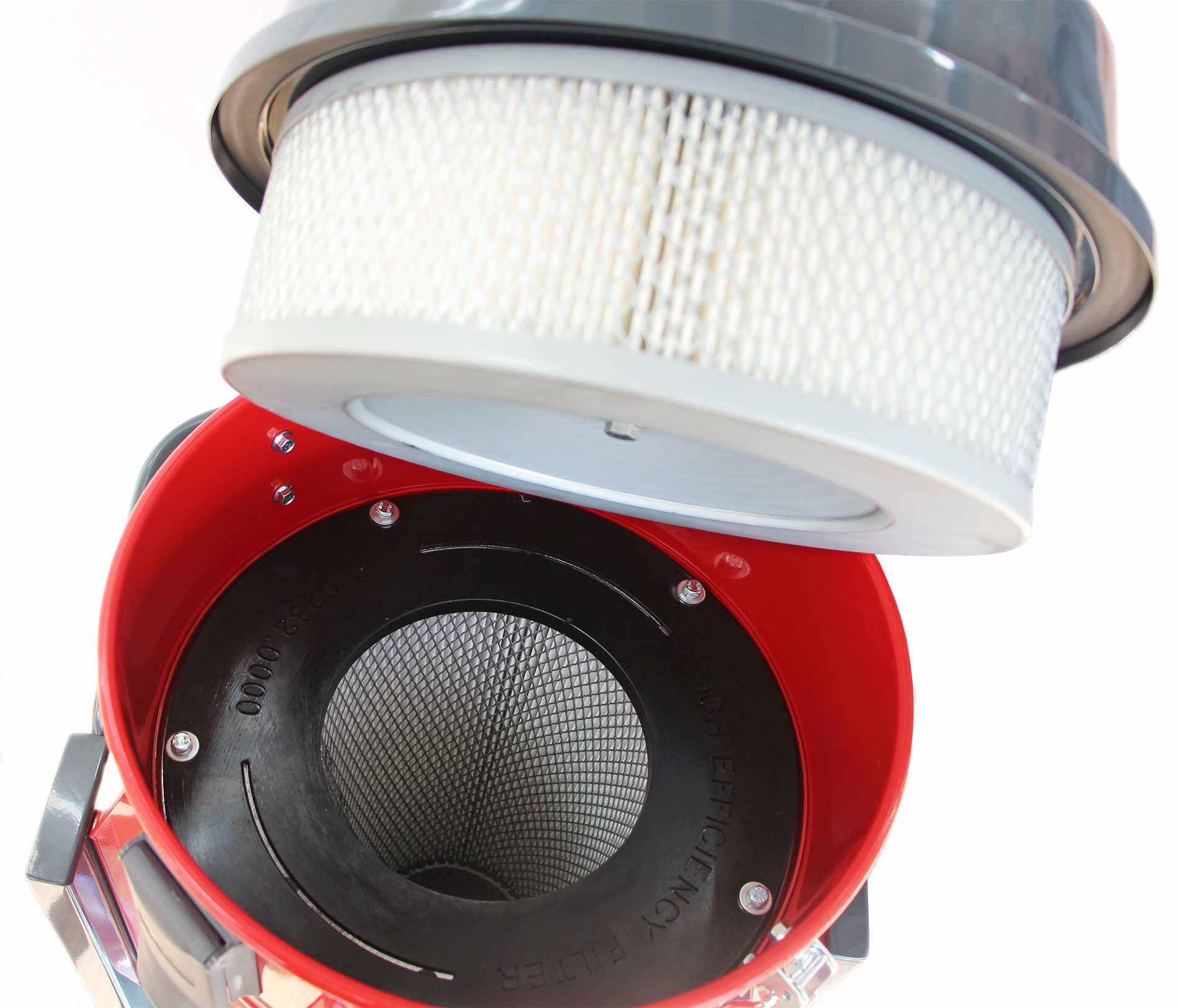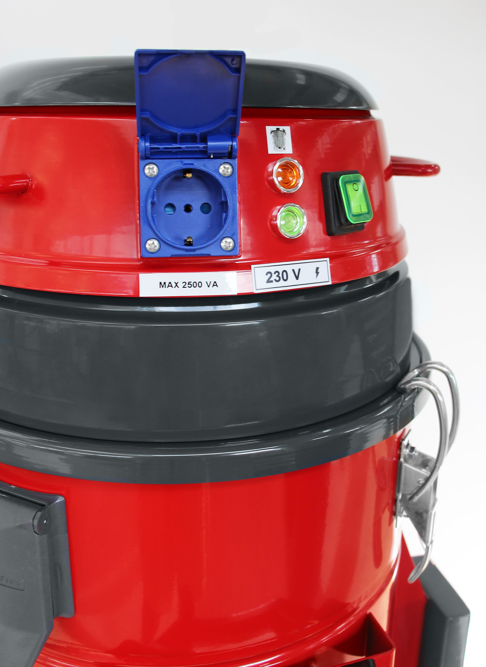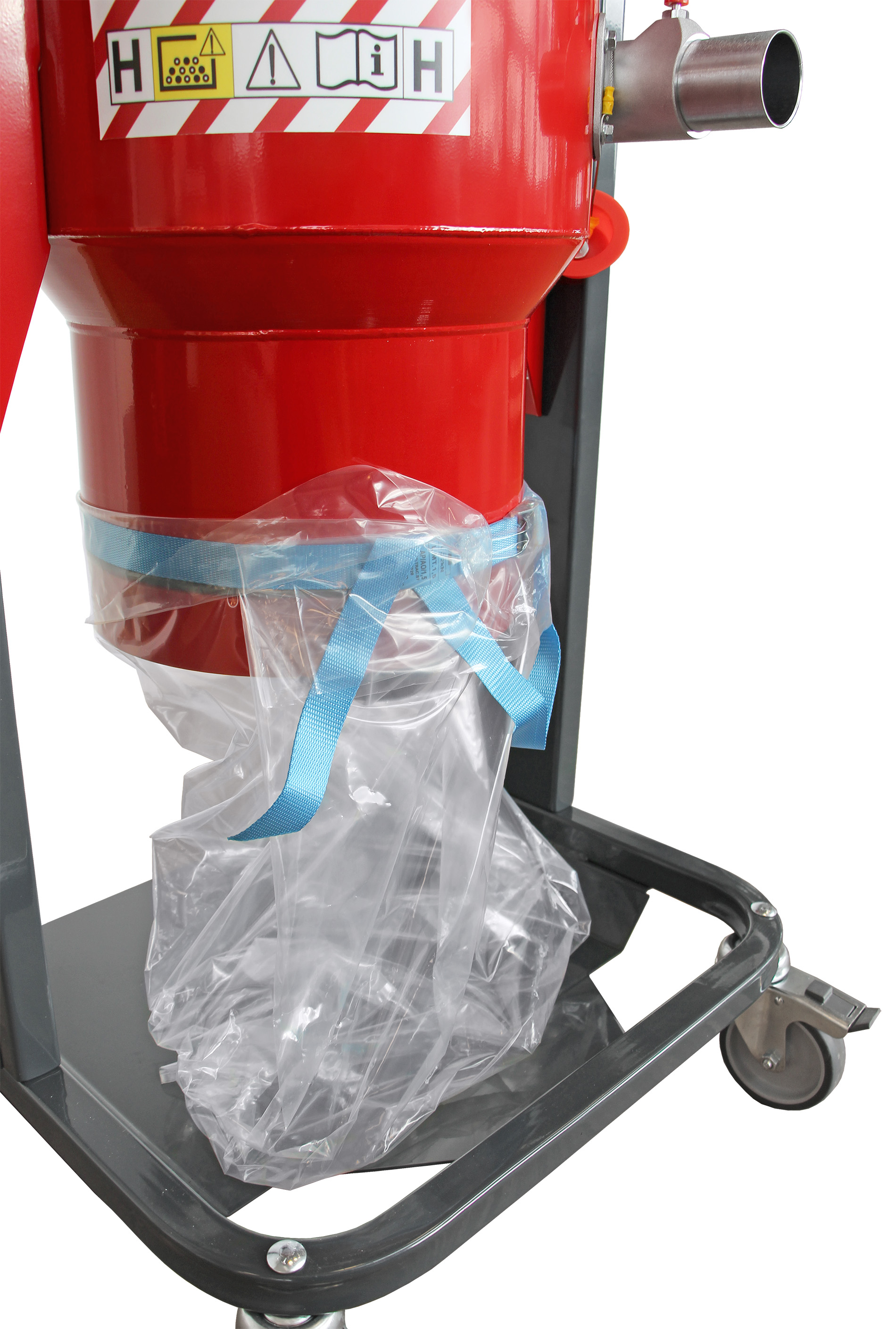 Industridammsugare för torrt och vått avfall. Dammsugaren är integrerad i ett fast stativ, där det finns plats för en påse under maskinen. Utrustad med ett M-filter för att avlägsna grovt damm (30 000 cm2), och ett HEPA H-filter som hanterar fint damm (20 500 cm2). Dammsugaren kan därför användas för alla typer av damm och är en H-godkänd maskin.