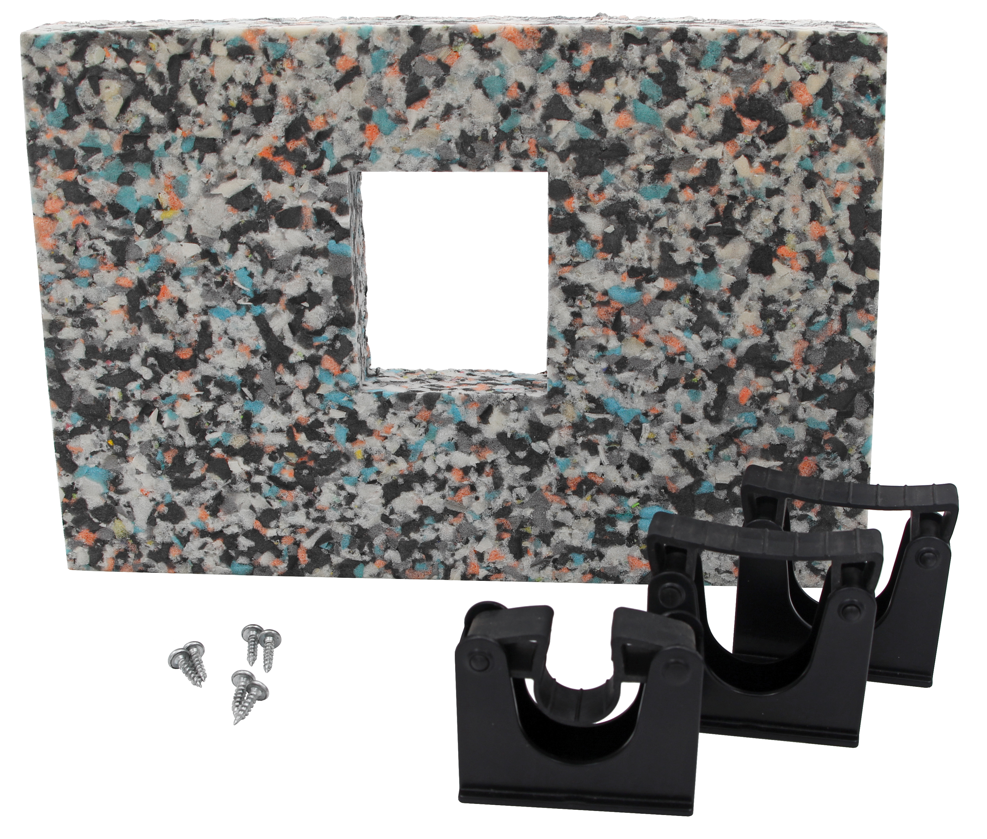 - Levereras med skumskiva, monteringsfästen och 6 skruvar