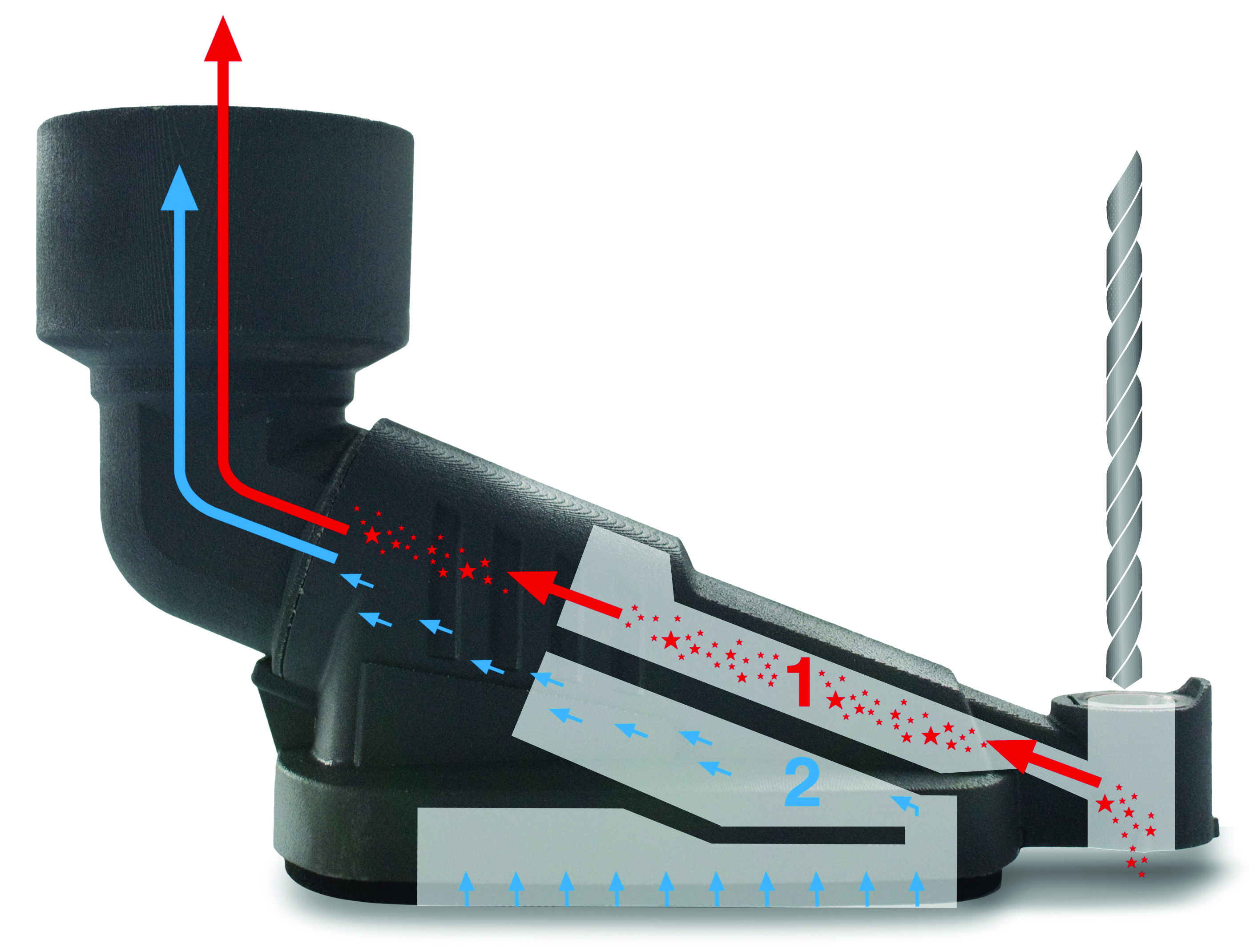 Dammsugningstillbehör för att suga upp borrdamm direkt från borrhålet