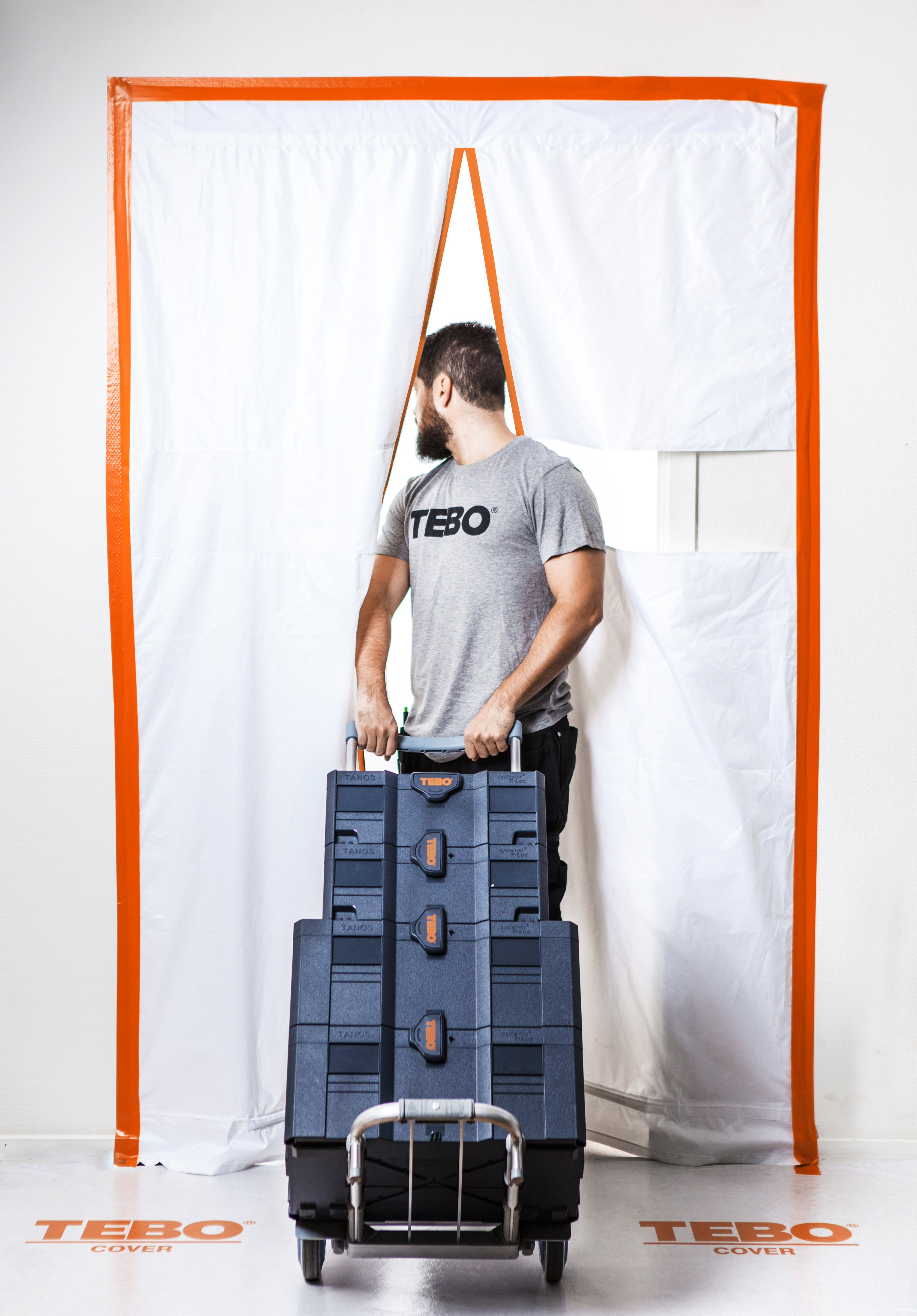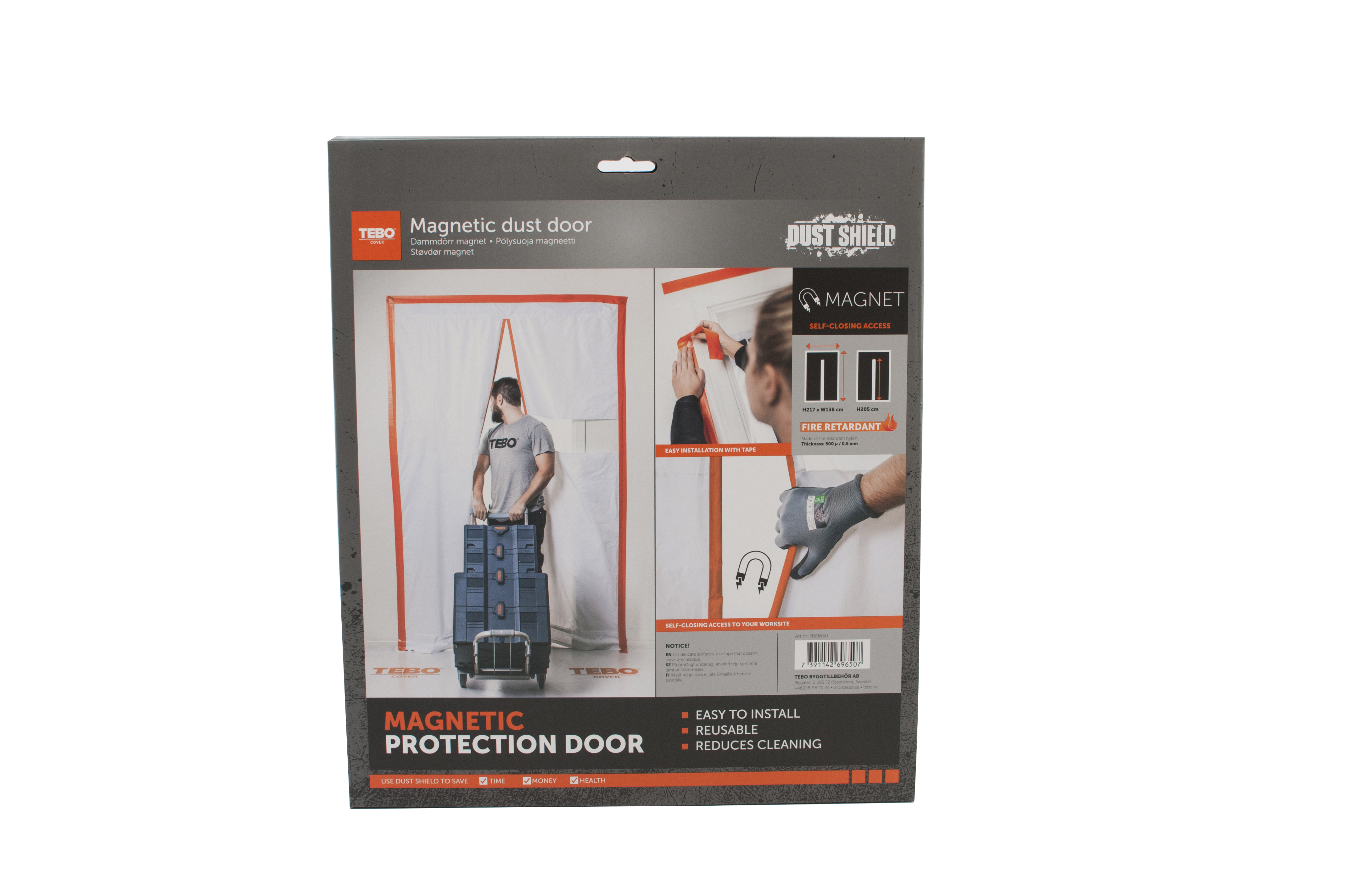 Dammlucka tillverkad av brandsäker nylon med magnetisk dragkedja för att täcka dörröppningar vid renoveringar. Dammluckan förhindrar att byggdamm sprids och underlättar samtidigt passage från rum till rum. Se produktvideon här .