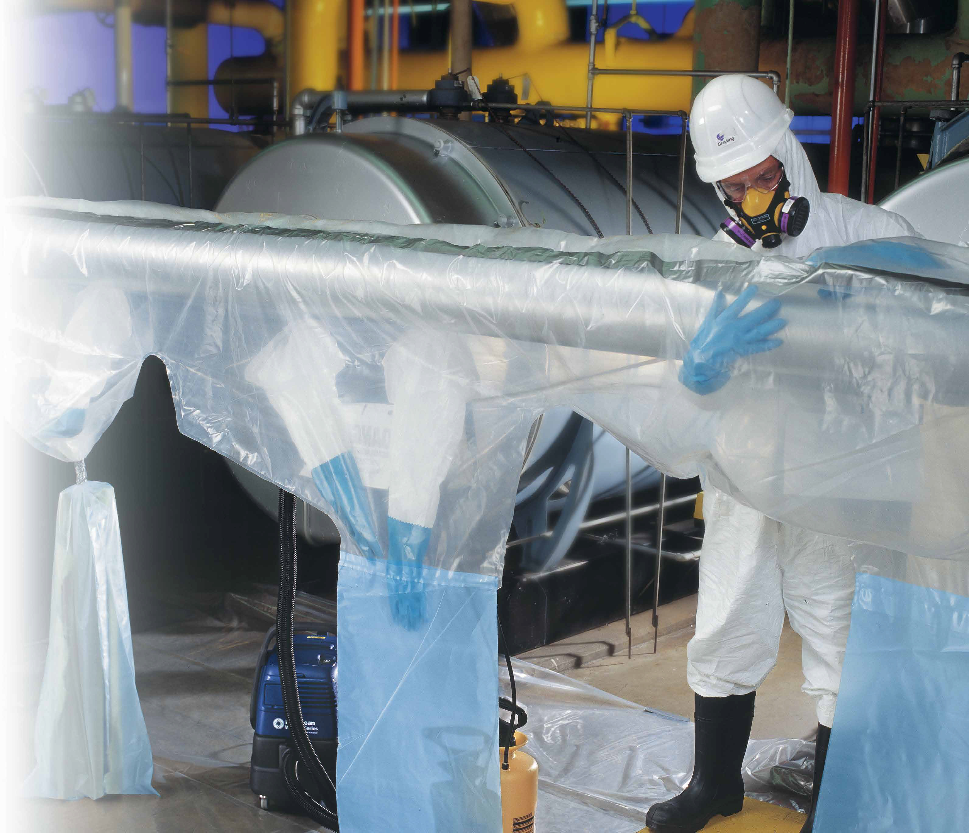 Asbestborttagaren är konstruerad för användning på horisontella rör med en diameter på upp till 254 mm. Den skyddar arbetaren från att andas in skadliga asbestfibrer och minskar risken för exponering avsevärt.