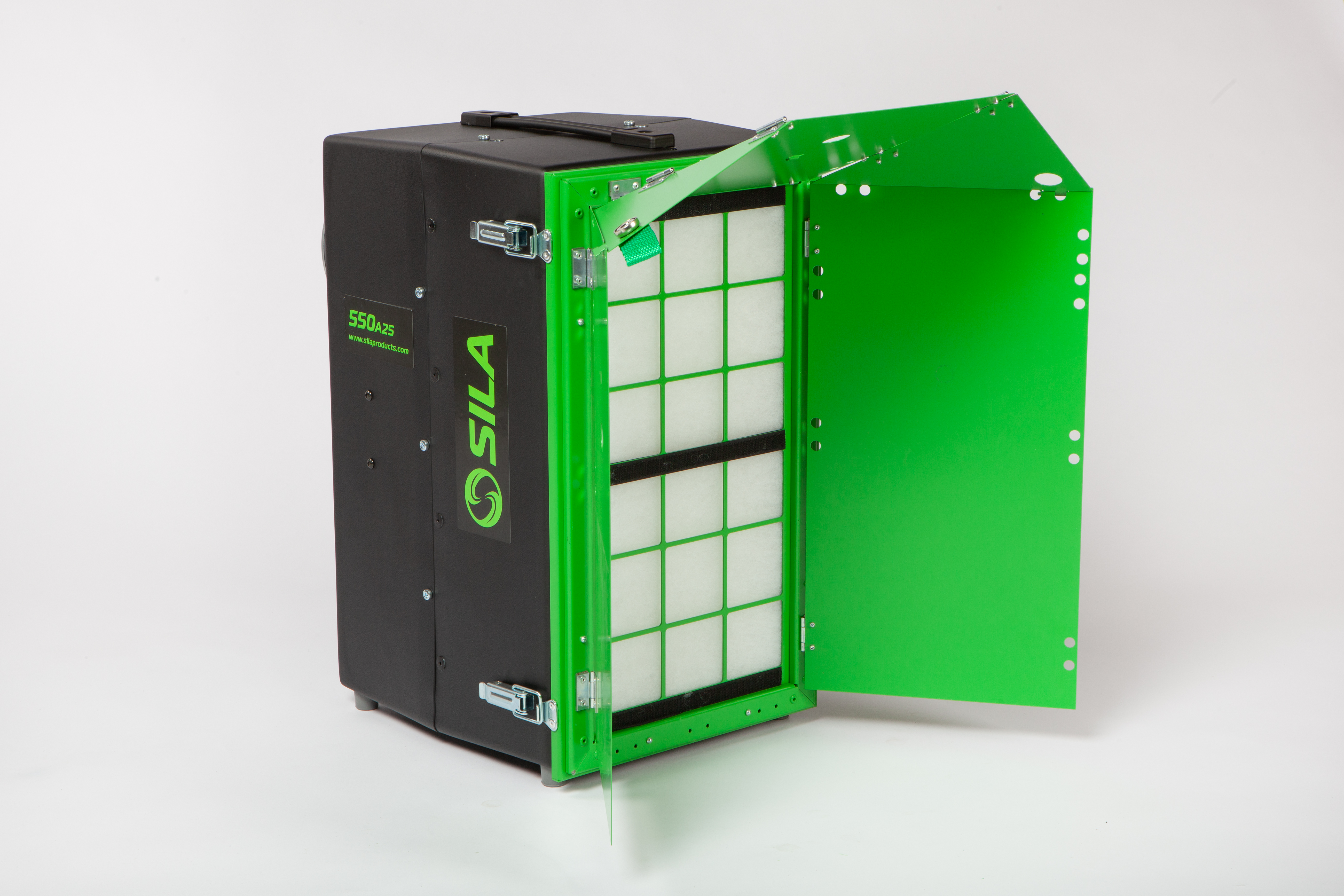 Dammkåpans flikar fälls enkelt ut och skapar en praktisk blandningsstation för att blanda kakellim och murbruk. När du placerar hinken vid suget leds dammet snabbt in i luftrenaren och du förhindrar att damm sprids ut i rummet. När du är klar kan du snabbt fälla in flikarna igen och i hopfällt läge fungerar de som transportskydd. Eftersom dammkåpan är baserad på den patenterade SILA-saneringsramen kan du även använda den för att skapa en undertryckszon. Så vi har 3 funktioner i 1 produkt.