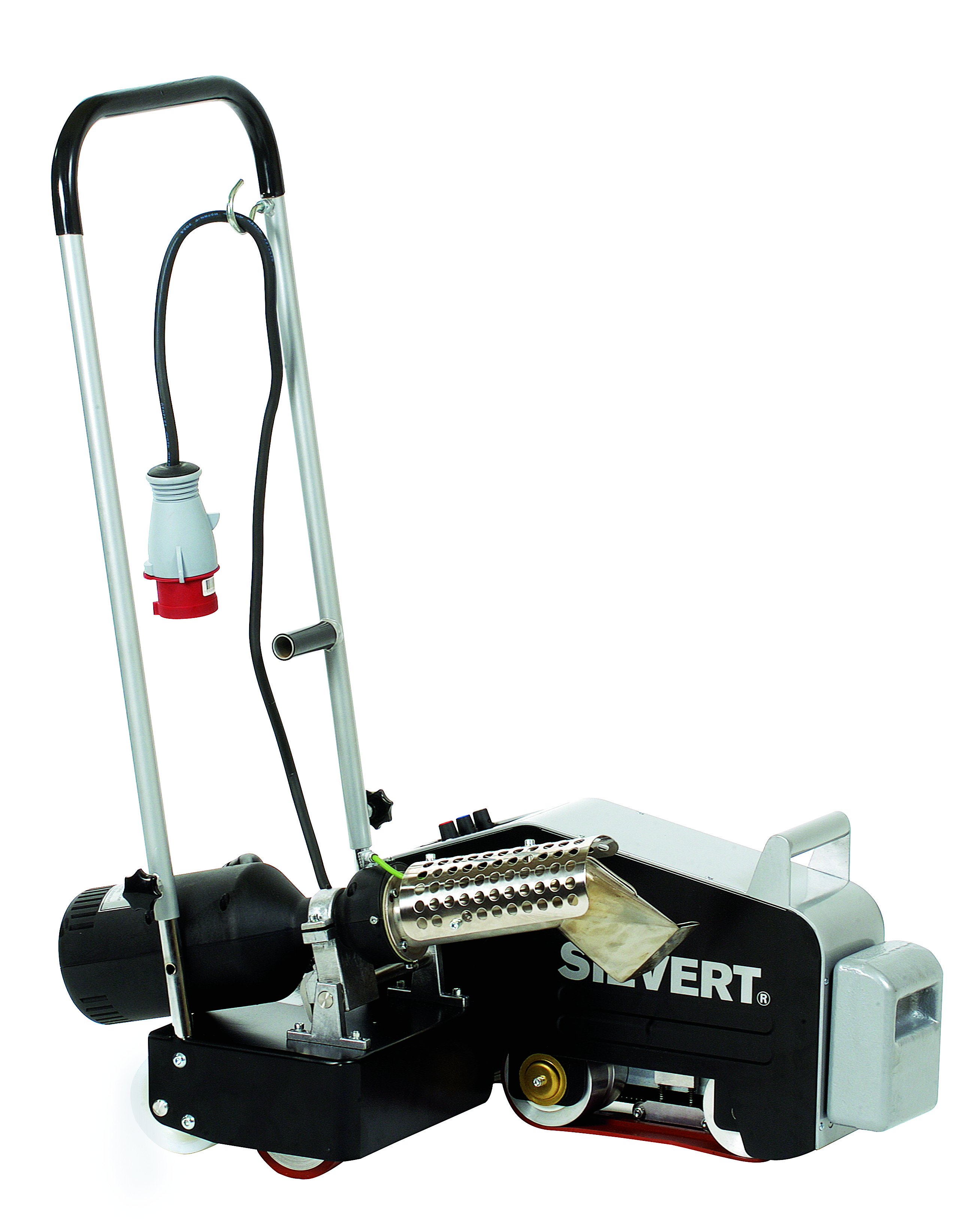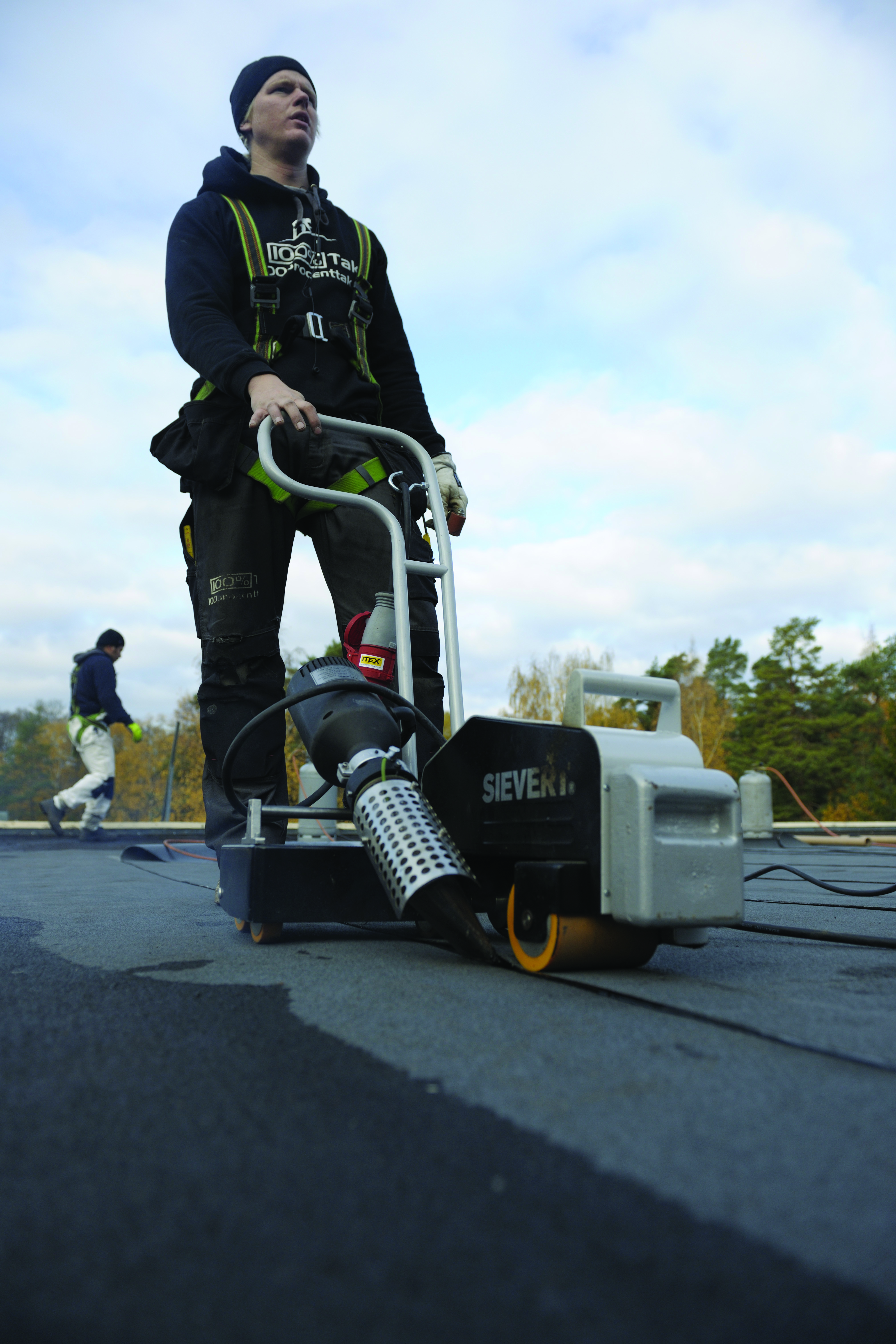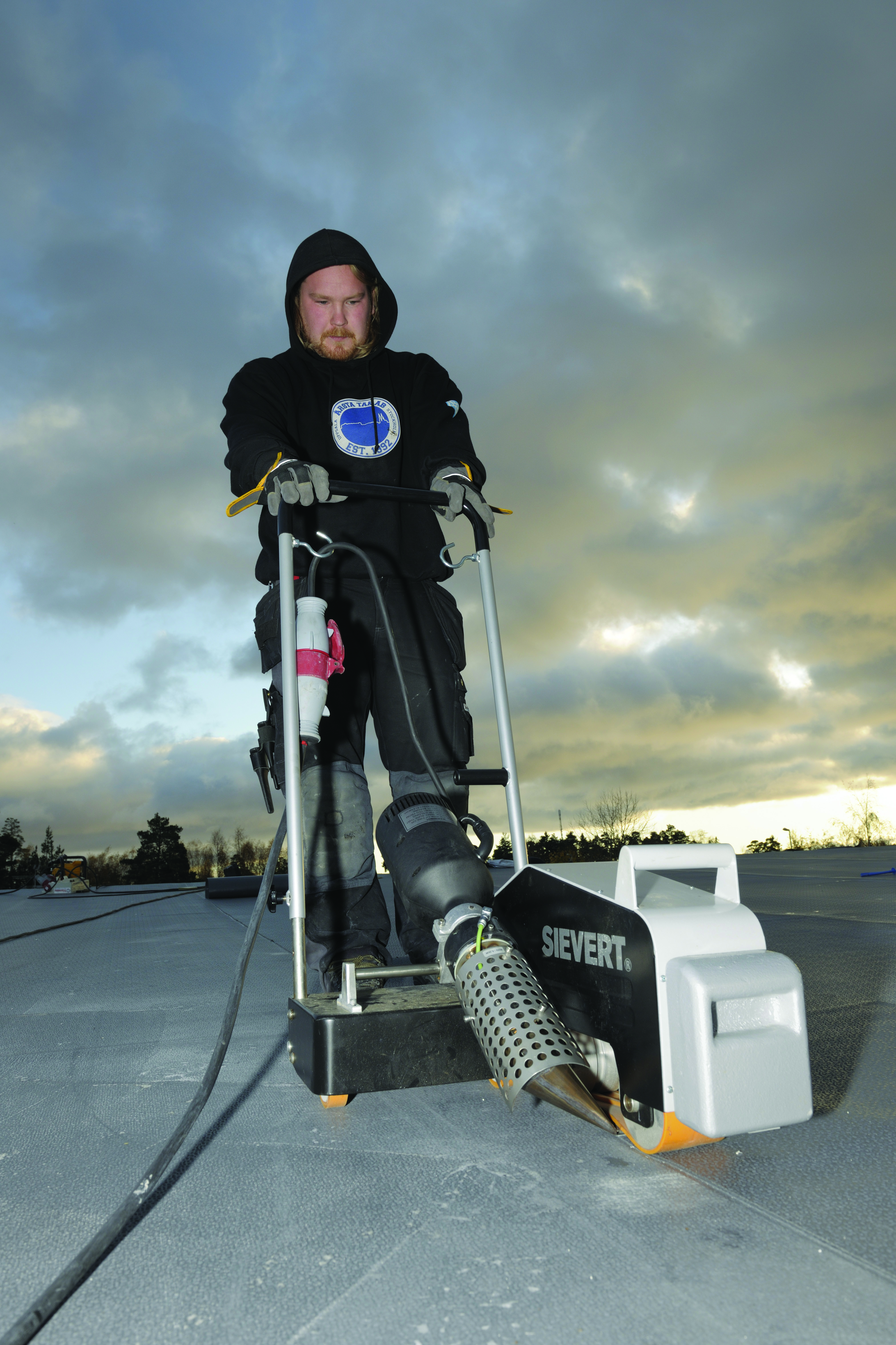 TW5000 varmluftsbrännare för automatisk överlappsvetsning av termoplastiska och enskiktade gummimembran. Unikt fyrhjulsdrivet remdriftssystem säkerställer en perfekt fog utan veck. Klarar lutningar upp till 30 grader. Justerbar hastighet. Önskad