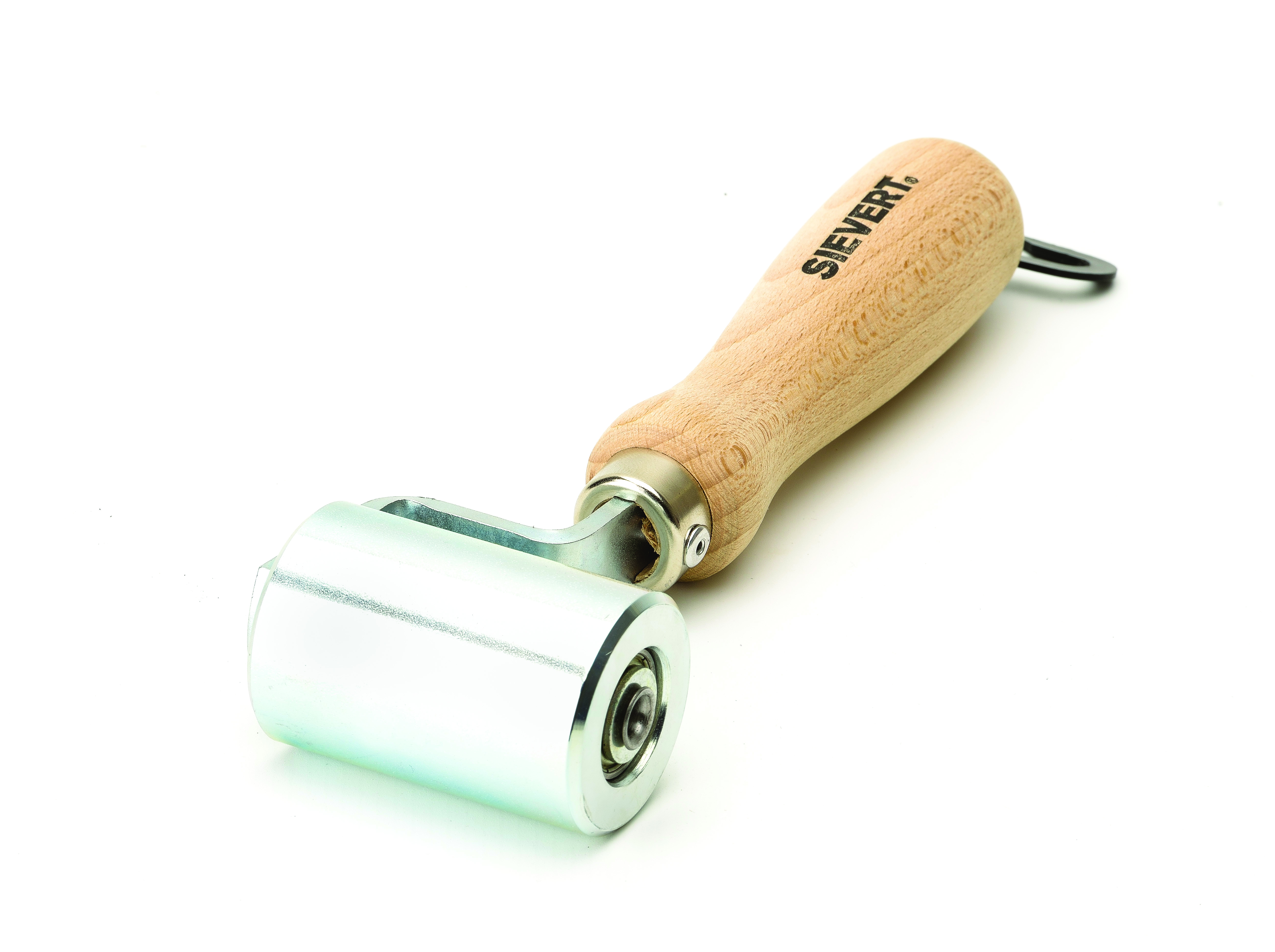 Kraftig stålrulle för kalltryckssvetsning. Två lättgående kullager, nitad axel, ergonomiskt trähandtag för maximalt tryck, fast på ena sidan för överlappsvetsning.
