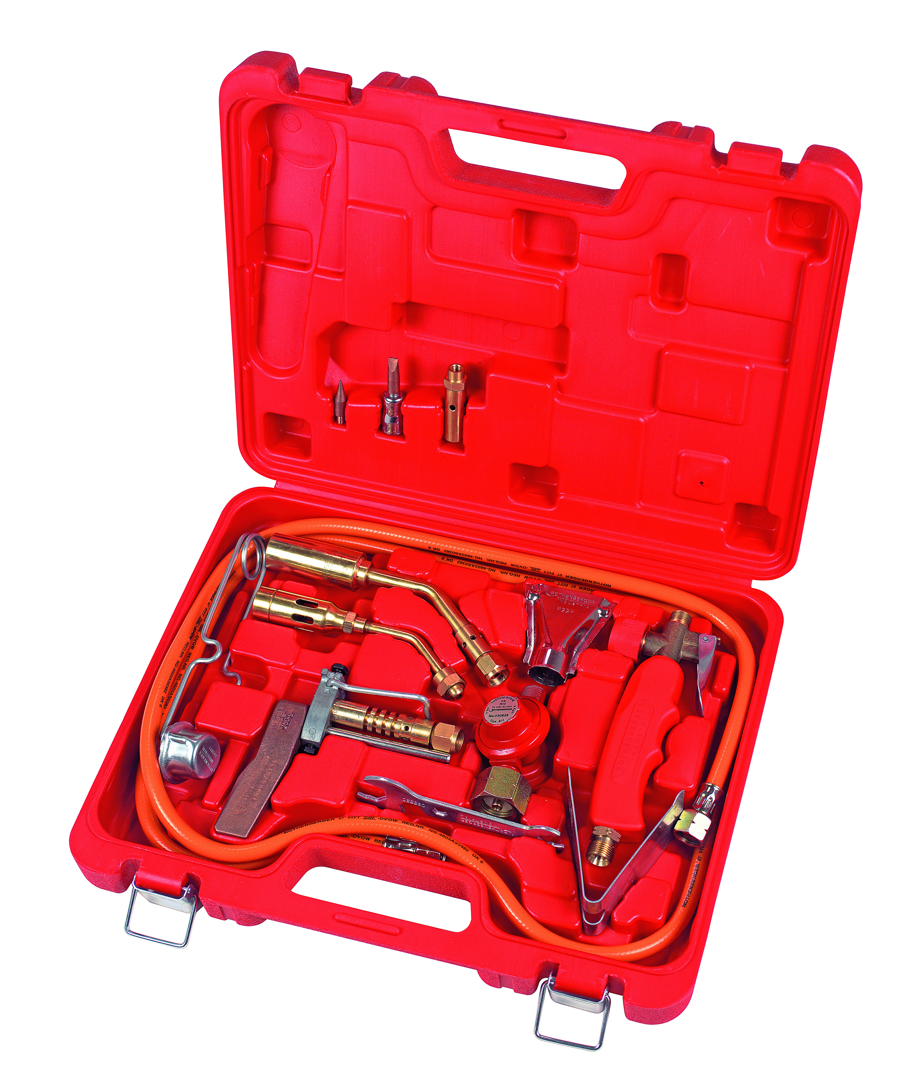 Effektivt Turbo loddeværktøj med komplet universelt udstyr samlet i kuffert. Flammetemperatur på 2000°C og arbejdstemperatur på 800°C. De gasførende dele er udarbejdet i messing. Velgnet til opvarmning, hårdlodning og lodning af kobber- og stålrør, plader og beslag samt kapillærlodning ved sanitets- og varmeinstallationer.