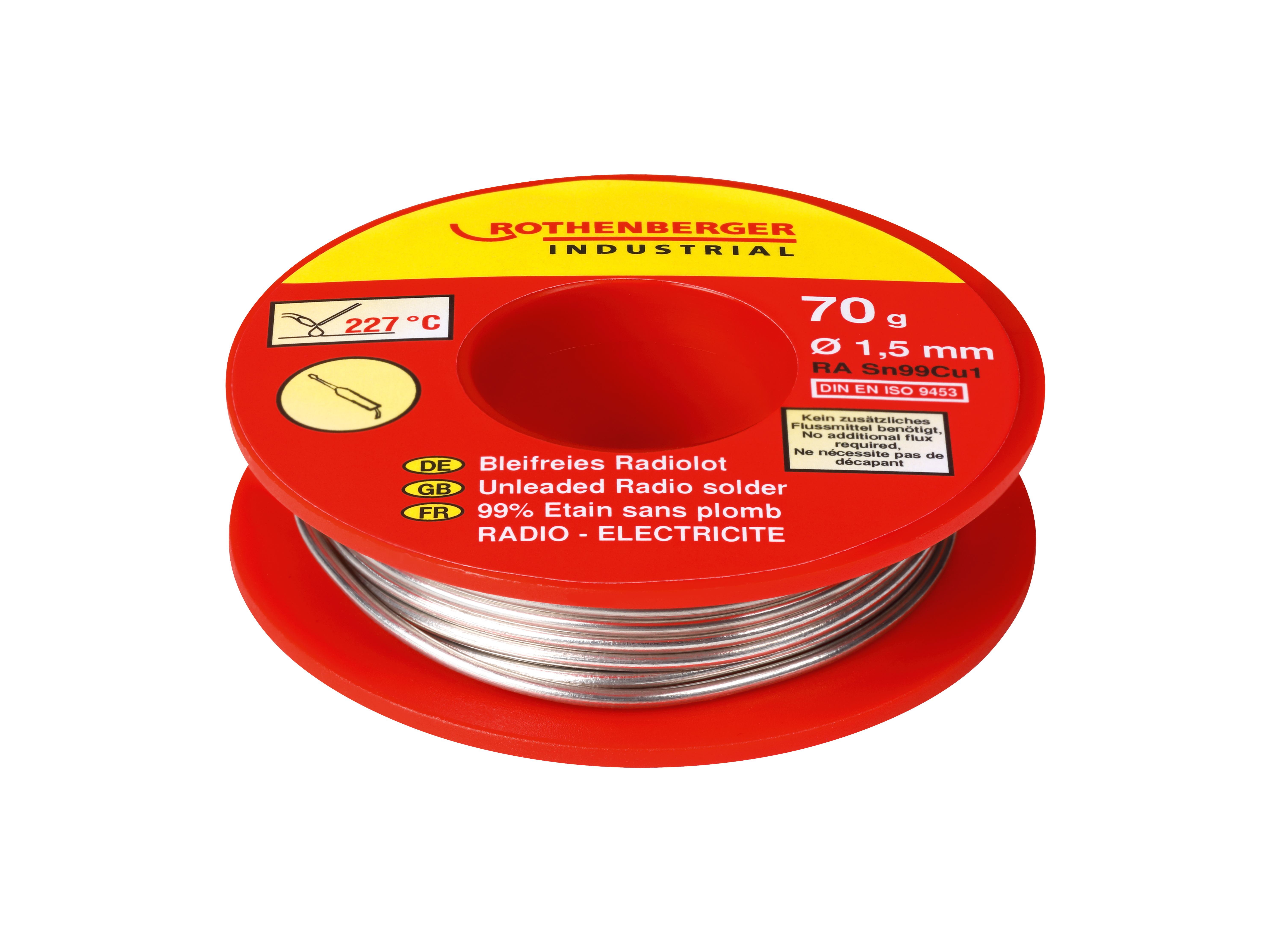 Högkvalitativt blyfritt lod Ø 1,5 mm enligt DIN EN ISO 9453:2006. För elektroniska komponenter som kretskort, kablar och ledningar. På spole.