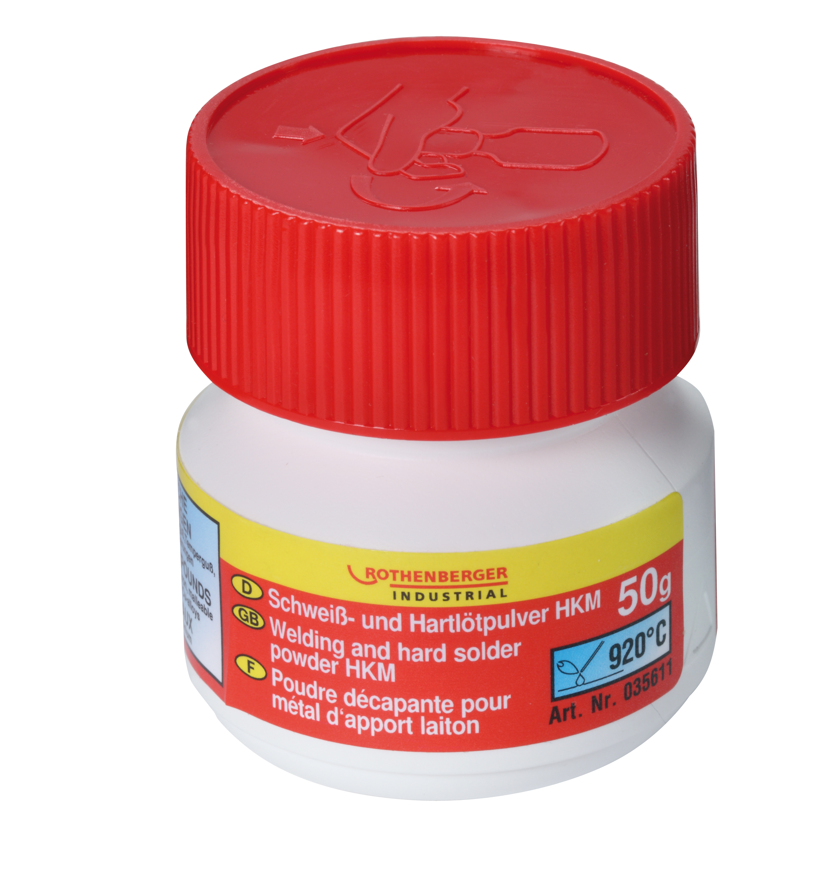 Pulver til hårdlodning af messing, kobber, rødtmetal, nysølv, bronze og støbejern samt svejsning af støbejern. Indhold 50 g.