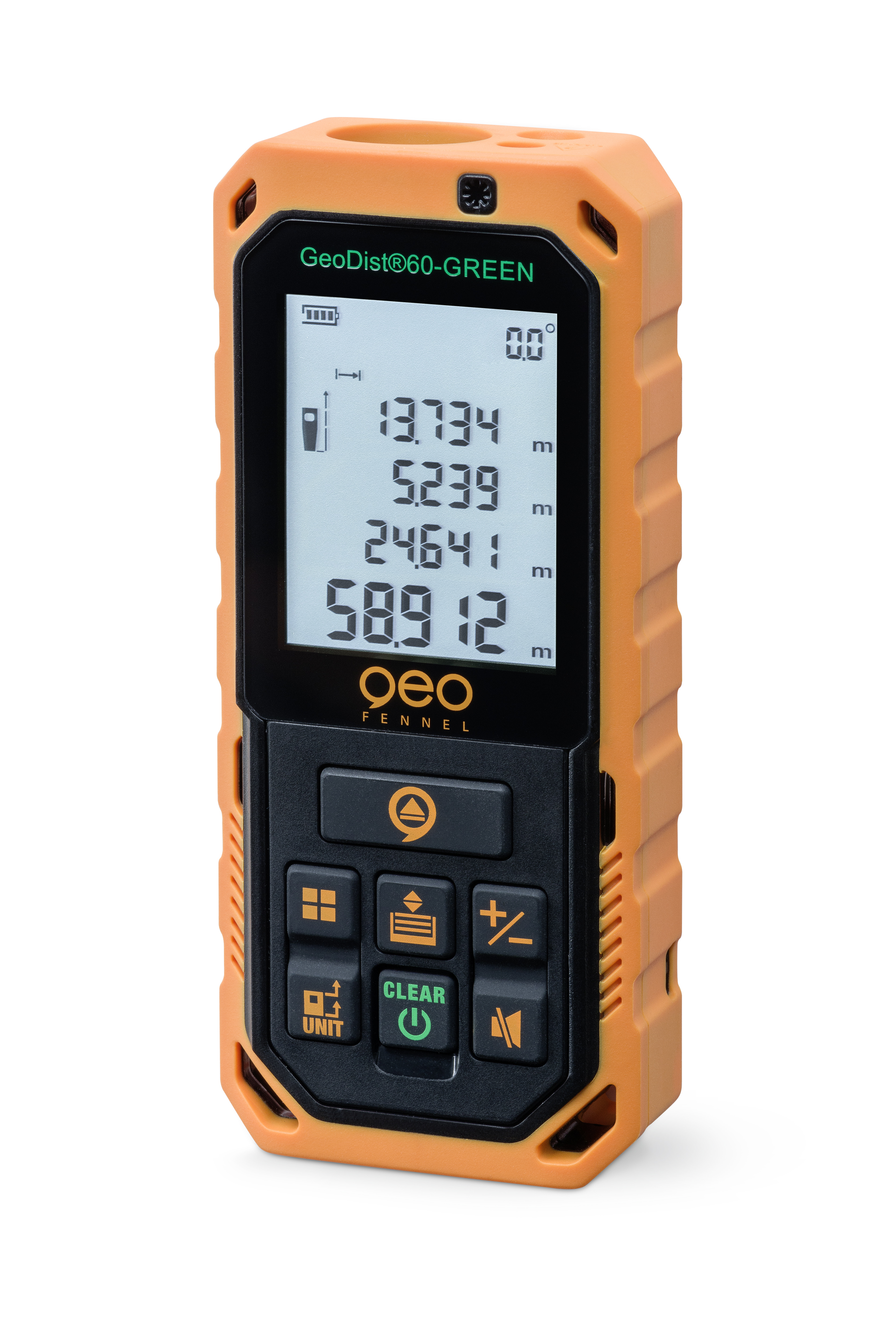 Mätområde på 60 m och mätnoggrannhet ± 2 mm, IP 65 och stöttåligt hölje. Grön laserstråle. Gradskiva, Pythagorasfunktioner, automatisk höjdmätning och dataminne. Levereras med uppladdningsbara NiMH-batterier.