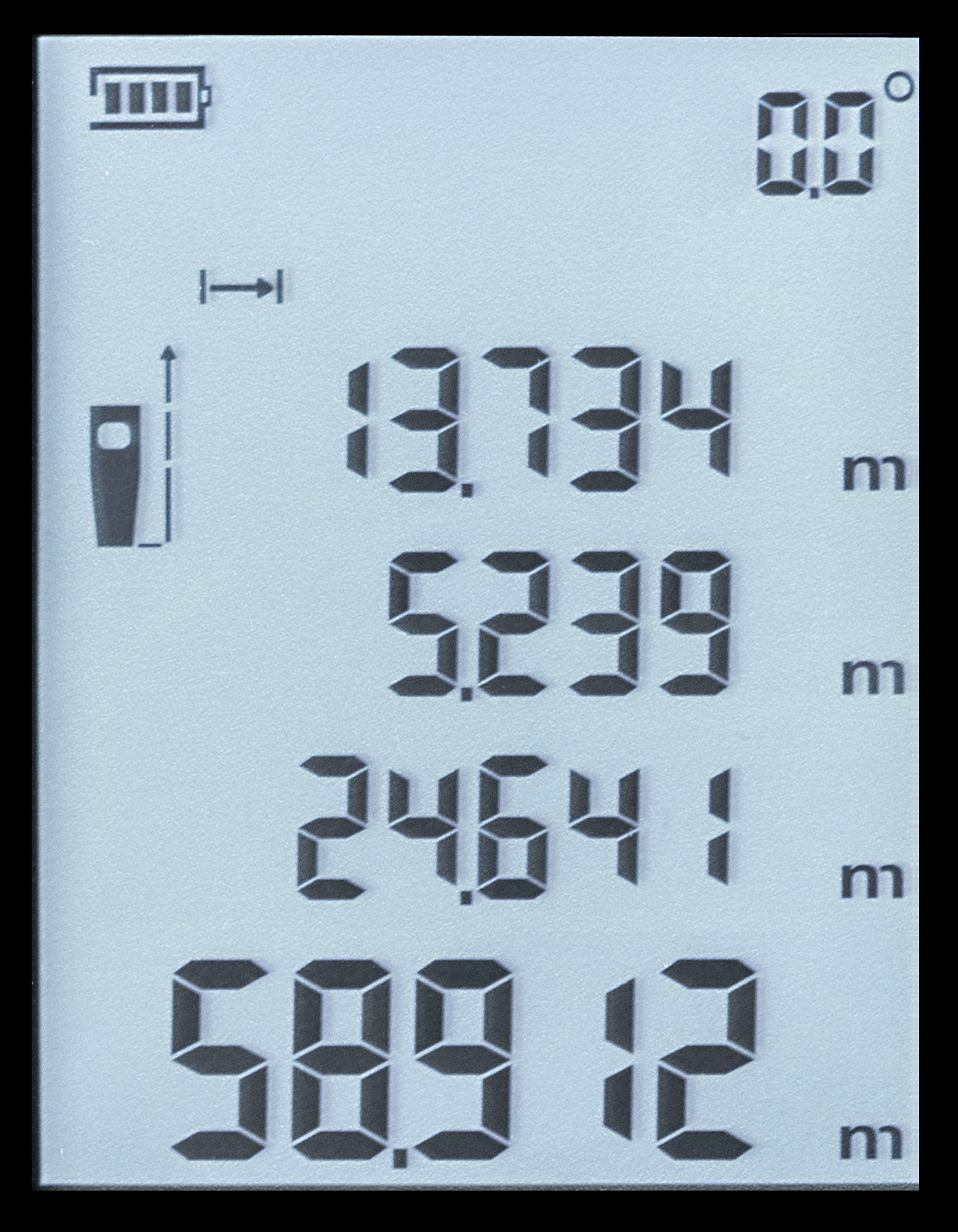 | Funktioner | Avståndsmätning Arealmätning Auto-avstängning Breddmätning Höjdmätning Indikator för låg batterinivå Måttbandsfunktion Pythagoras Volymmätning |
