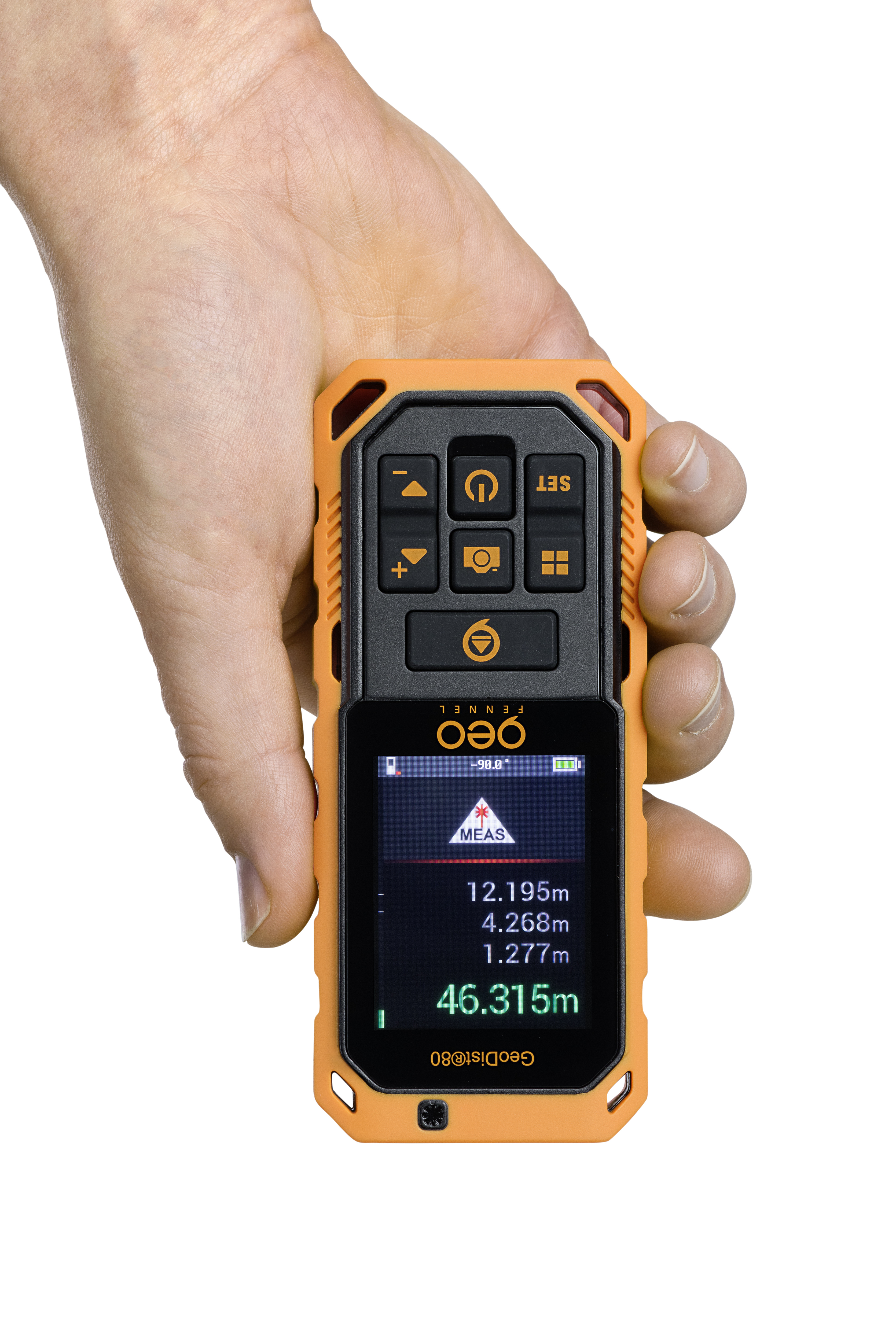 Mätområde på 80 m och mätnoggrannhet ± 2 mm, IP 65 och stöttåligt hölje. Kamera med zoom och punktsökare, färgdisplay. Lutningsmätning 4 x 90°, Pythagorasfunktioner, automatisk höjdmätning och dataminne. Levereras med NiMH-batterier. Röd laserstråle.