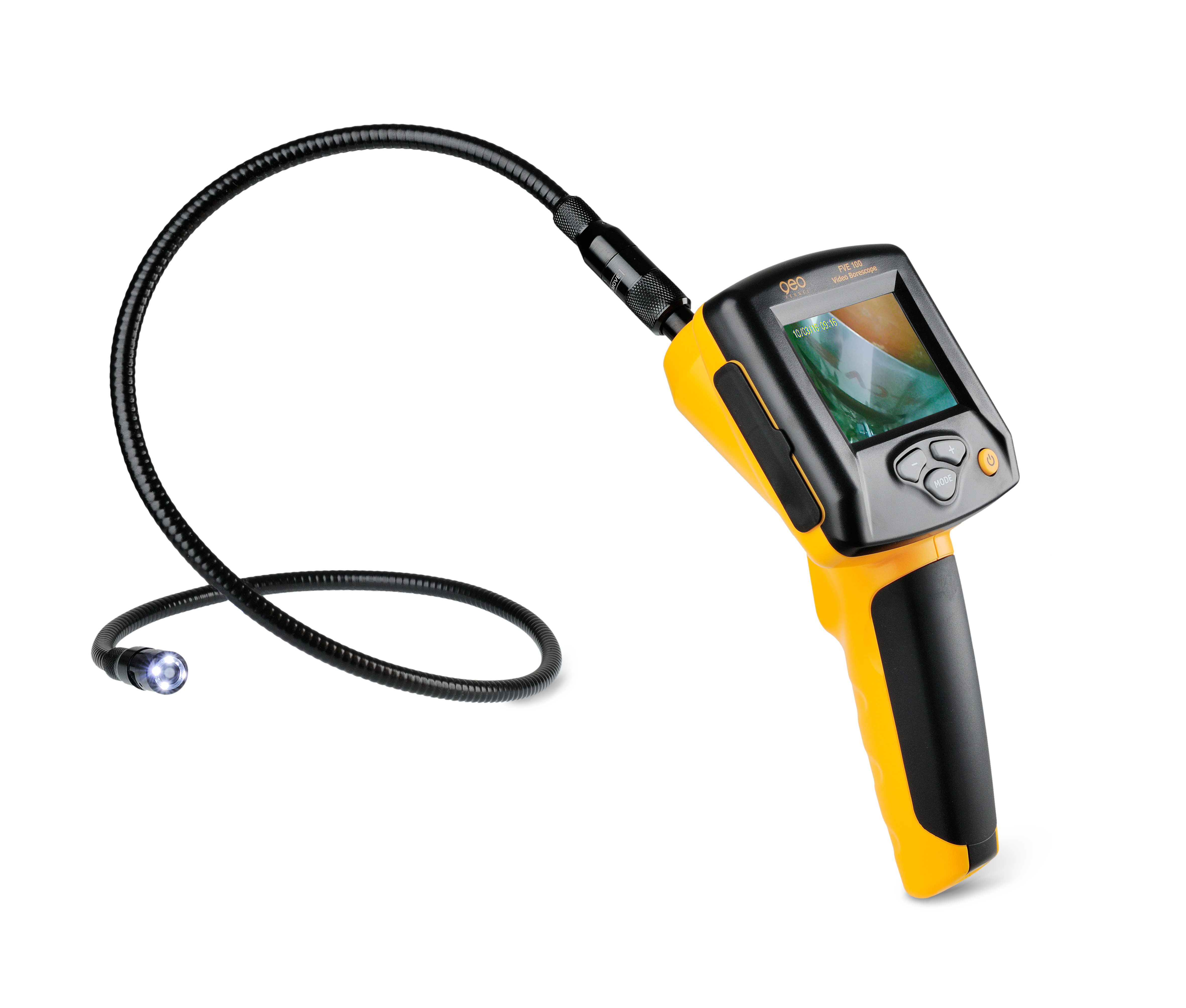 Endoskopkamera med 3 displayer (kan roteras 180° med tryckknapp). Bildöverföring till TV eller PC. 1 m långt teleskoprör med kamerahuvud gör det möjligt att nå dolda hålrum eller oåtkomliga områden. LED-belysningens intensitet på kamerahuvudet kan justeras. 320 x 240 pixlar. Kamera och teleskoprör kan sänkas ner i vatten, men resten av instrumentet är inte vattentätt.