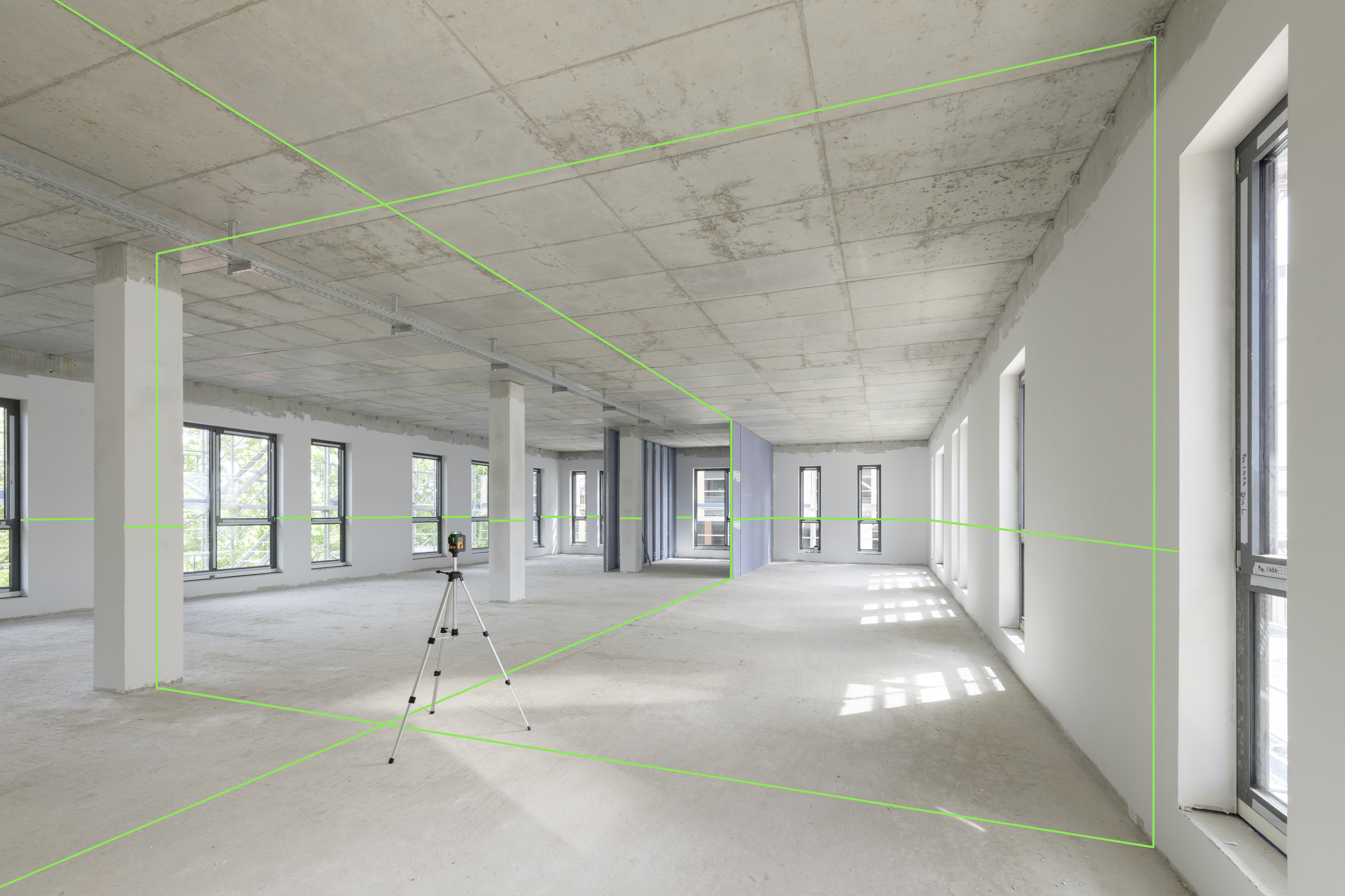 Grön flerlinjelaser med 3 x 360° laserlinjer som bildar 6 laserkors. Lasern är perfekt för en mängd olika nivelleringsuppgifter inomhus, såsom att sätta upp skiljeväggar och undertak, flytta punkter, kakelsättning etc.