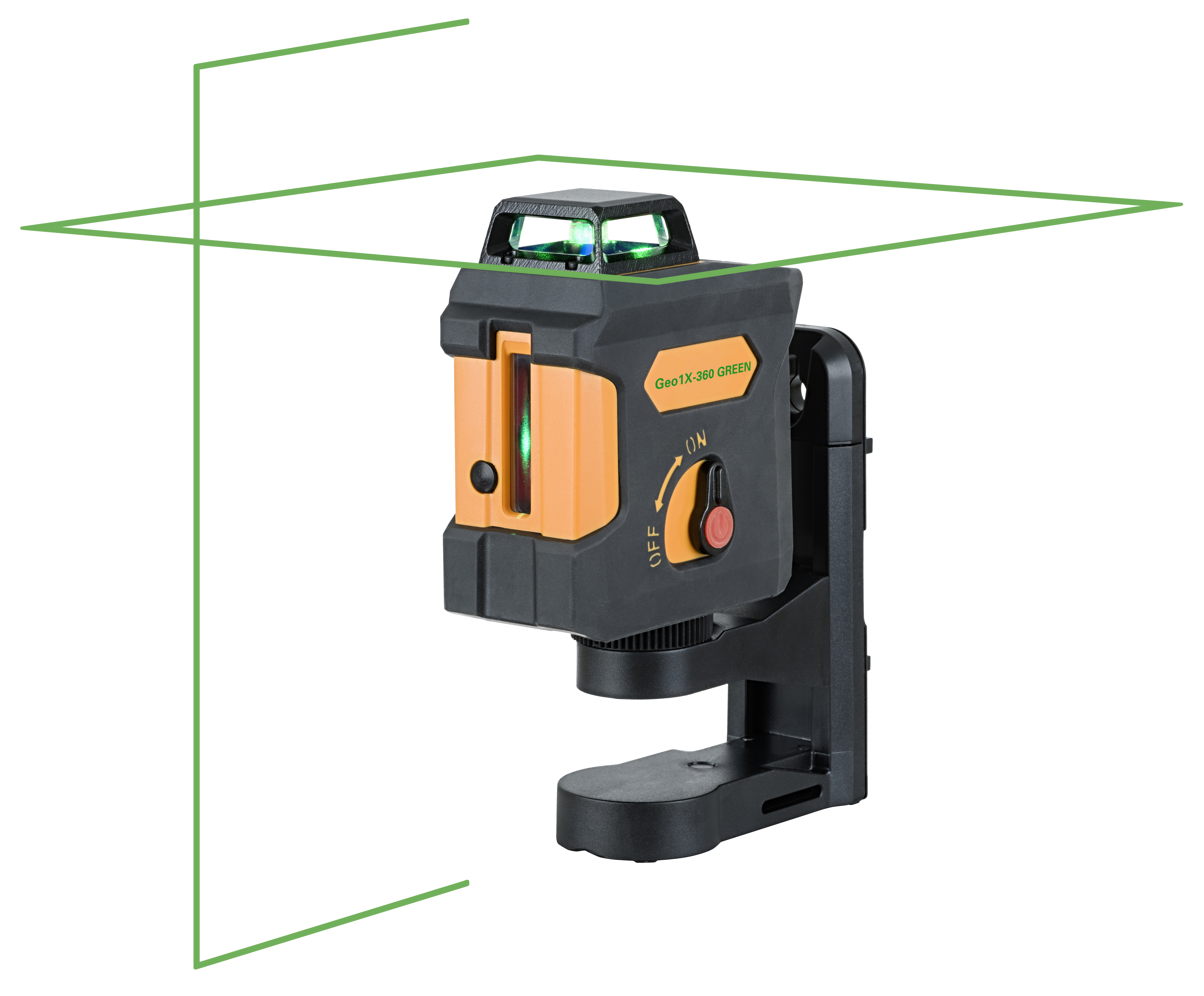 Grön korslinjelaser med 1 x 360° horisontell laserlinje och 1 x 120° vertikala laserlinjer, som bildar 1 laserkors. Lasern är perfekt för en mängd olika nivelleringsuppgifter inomhus, såsom att sätta upp skiljeväggar och undertak, flytta punkter, lägga kakel etc.