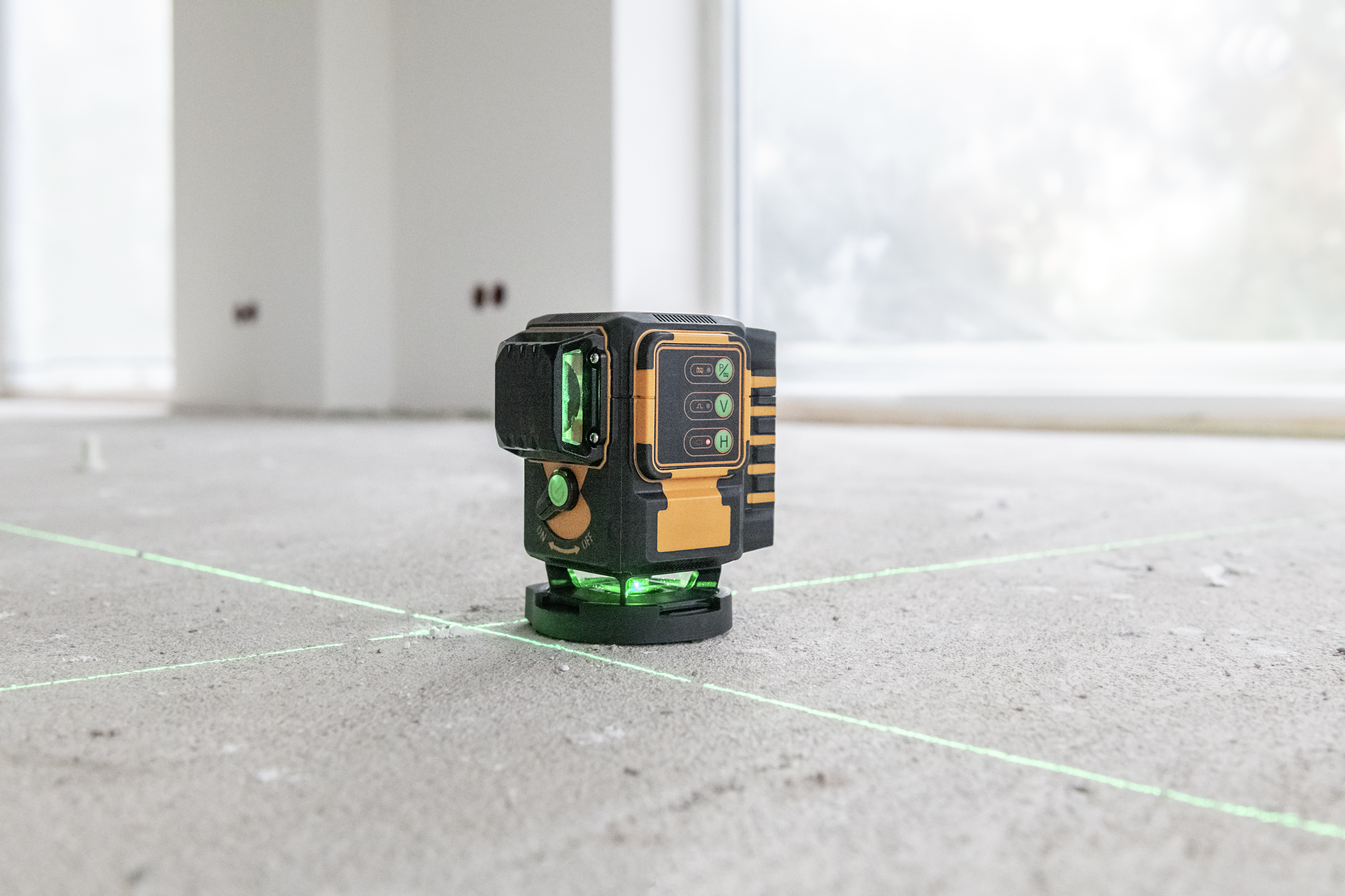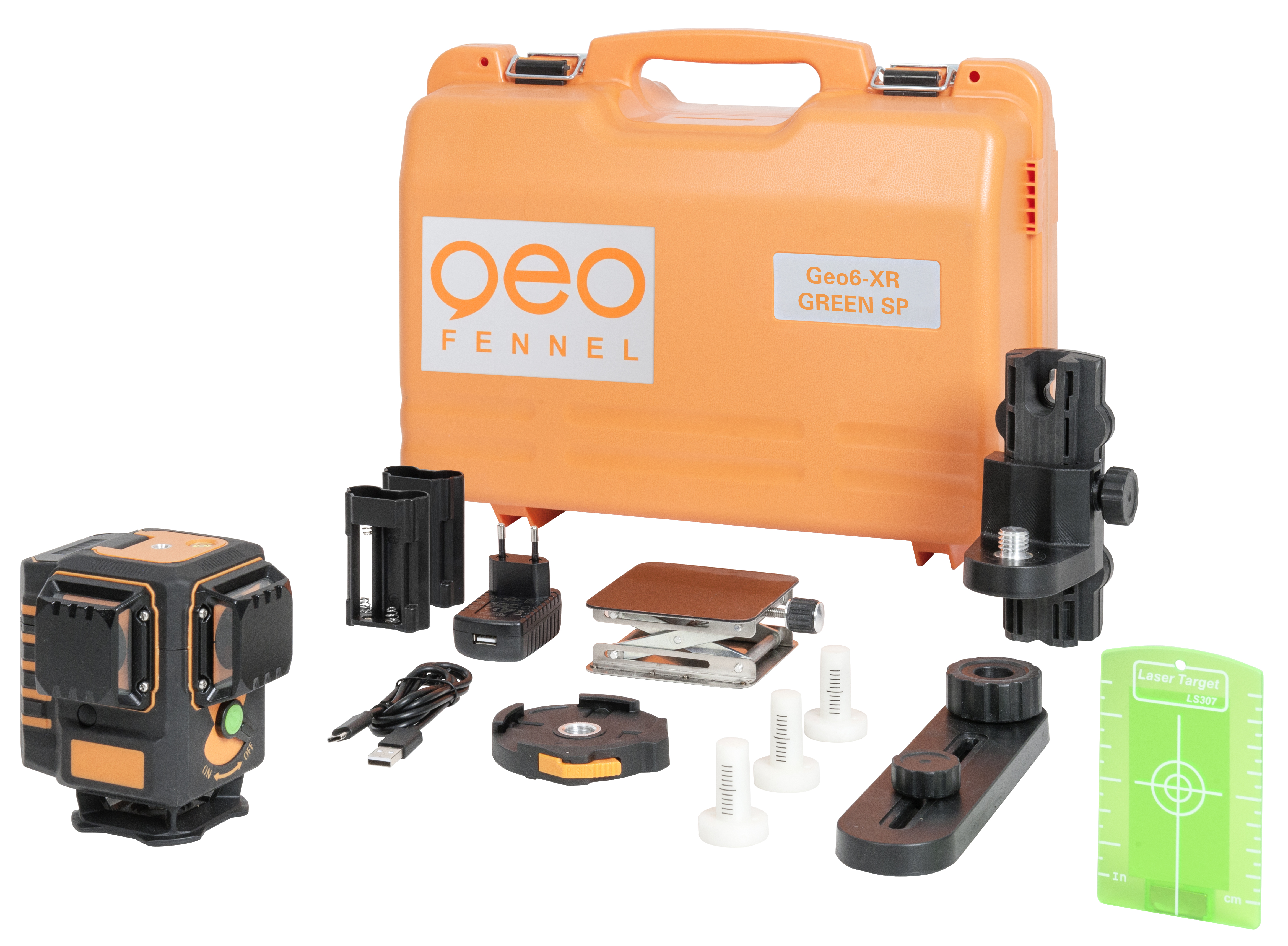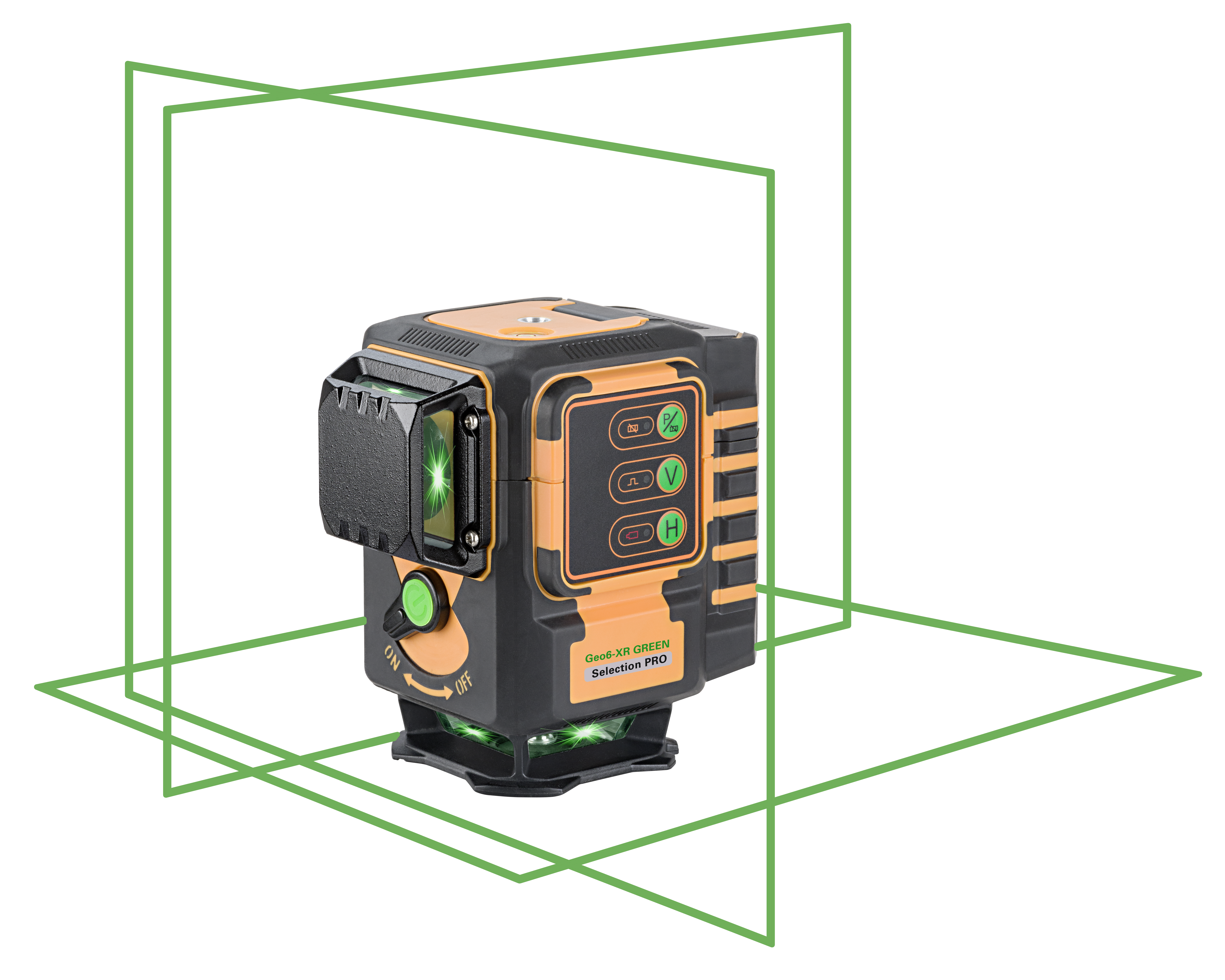 Grön flerlinjelaser med 3 x 360° laserlinjer, som bildar 6 laserkors. Lasern är idealisk för t.ex. kakelläggning, montering av kakel på väggar och väggmontering, eftersom den horisontella strålen kan komma mycket nära ytan och båda vertikala strålarna kan komma mycket nära en vägg.
