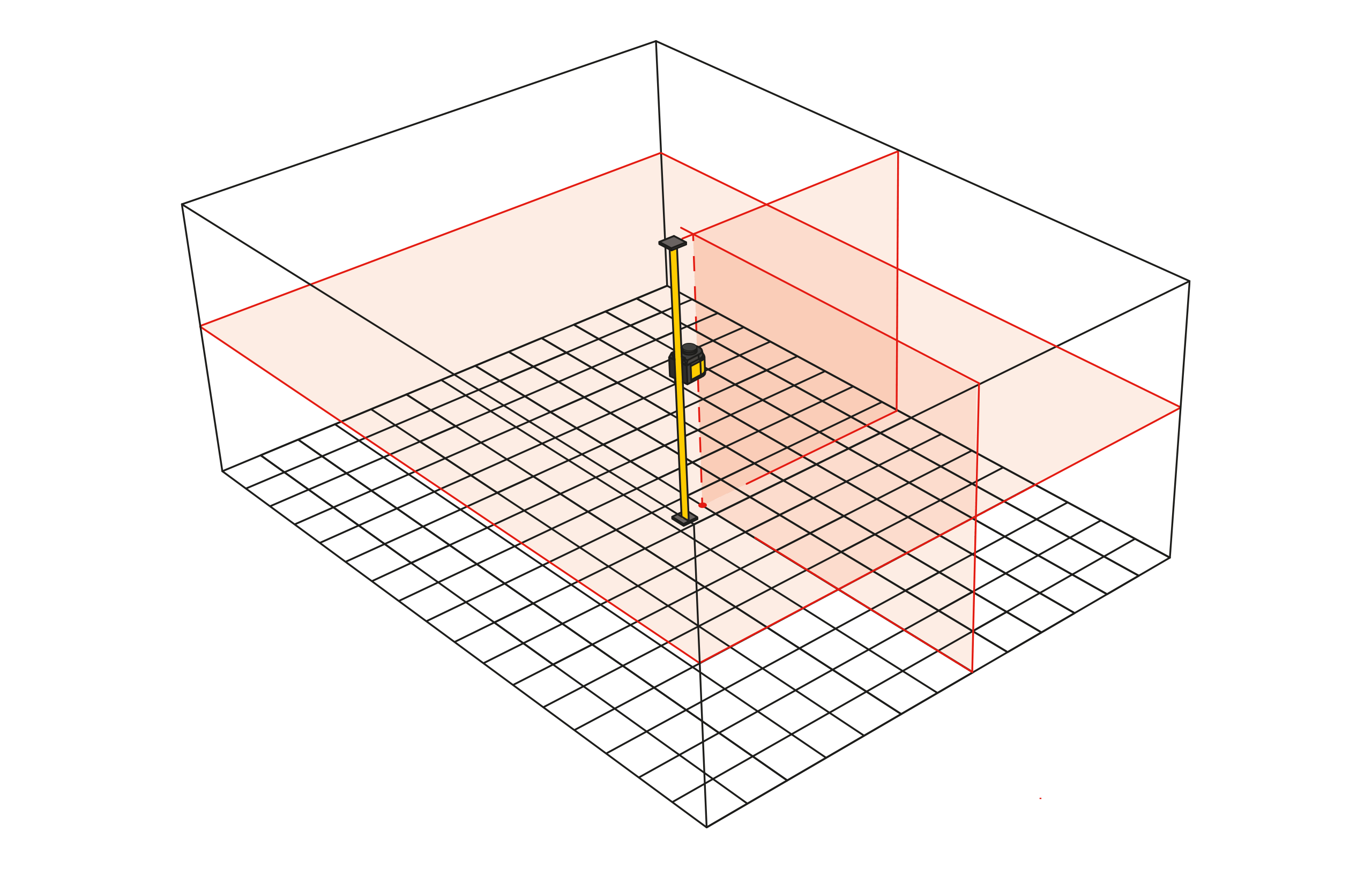 Självnivellerande flerlinjelaser med 360° horisontell linje för höjdöverföring, två vertikala linjer i 90° vinkel mot varandra och lodpunkt upp och ner för exakt mätning och uppriktningsarbete. MANUELL JUSTERING: exakt rotation av de vertikala laserlinjerna mot en målpunkt via vridknapp – lasern roterar runt lodpunkten utan att förlora position. Exakt arbete direkt på de tydliga, fina laserlinjerna på avstånd upp till 20 m. Roterbart hölje med utdragbar fot för höjdjustering vid arbete direkt på U-profiler. Pulserande laserlinjer för arbete med en valfri linjemottagare. Snabb självnivellering tack vare pendelteknik. Enkel växling mellan funktioner med enknappsmanövrering. Mångsidig användning: kan användas på golvet, på stativ (5/8” gänga) eller fästas på metallarbetsstycken. Stötdämpande STABILA softgrip-hölje. Stabil topp i aluminiumhölje.