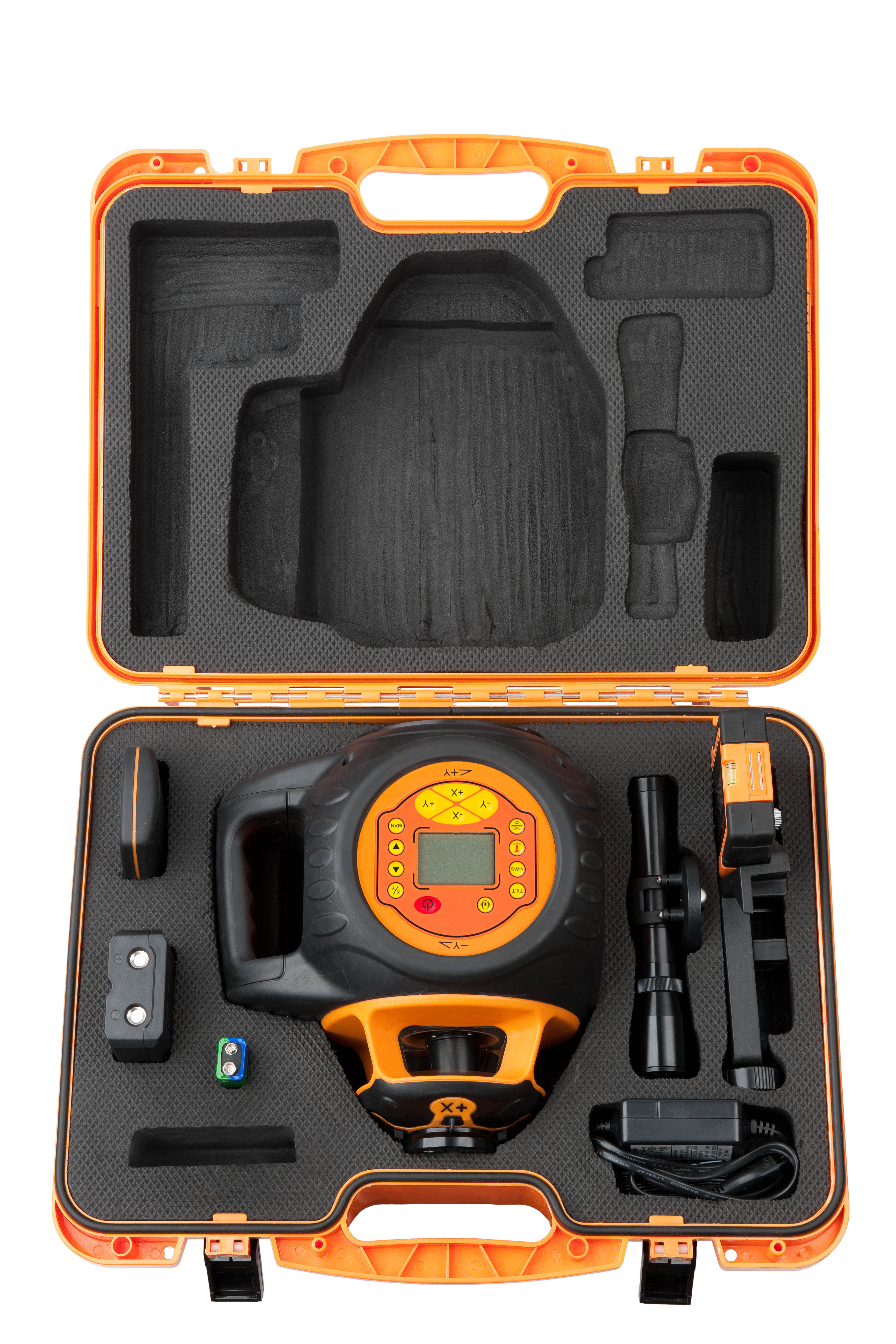 Mångsidig digital rotationslaser med digital tvåvägs lutning. Automatisk lutningskontroll och 90° lodrät stråle uppåt. Skanningsfunktion med finjustering och stort vinkelområde. Den perfekta lösningen för utomhusbyggnation på större byggarbetsplatser.