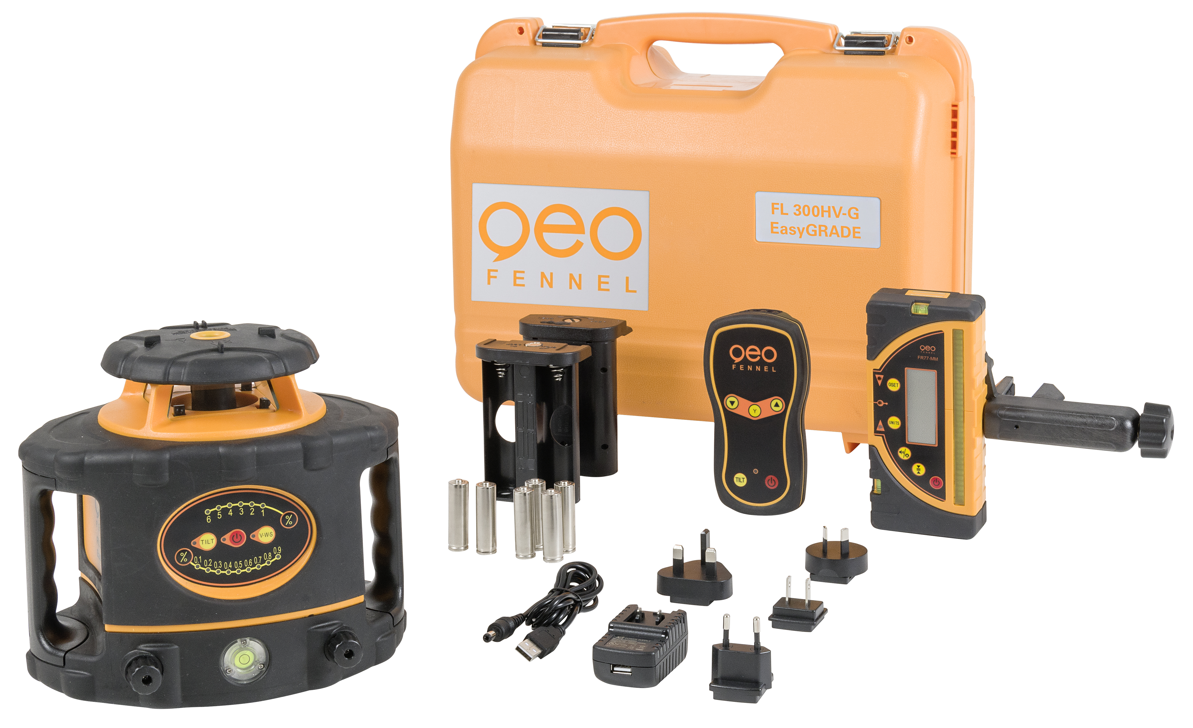 - Inkluderar lasermottagare FR 80-MM , vilket ger lasern en räckvidd på upp till 600 m