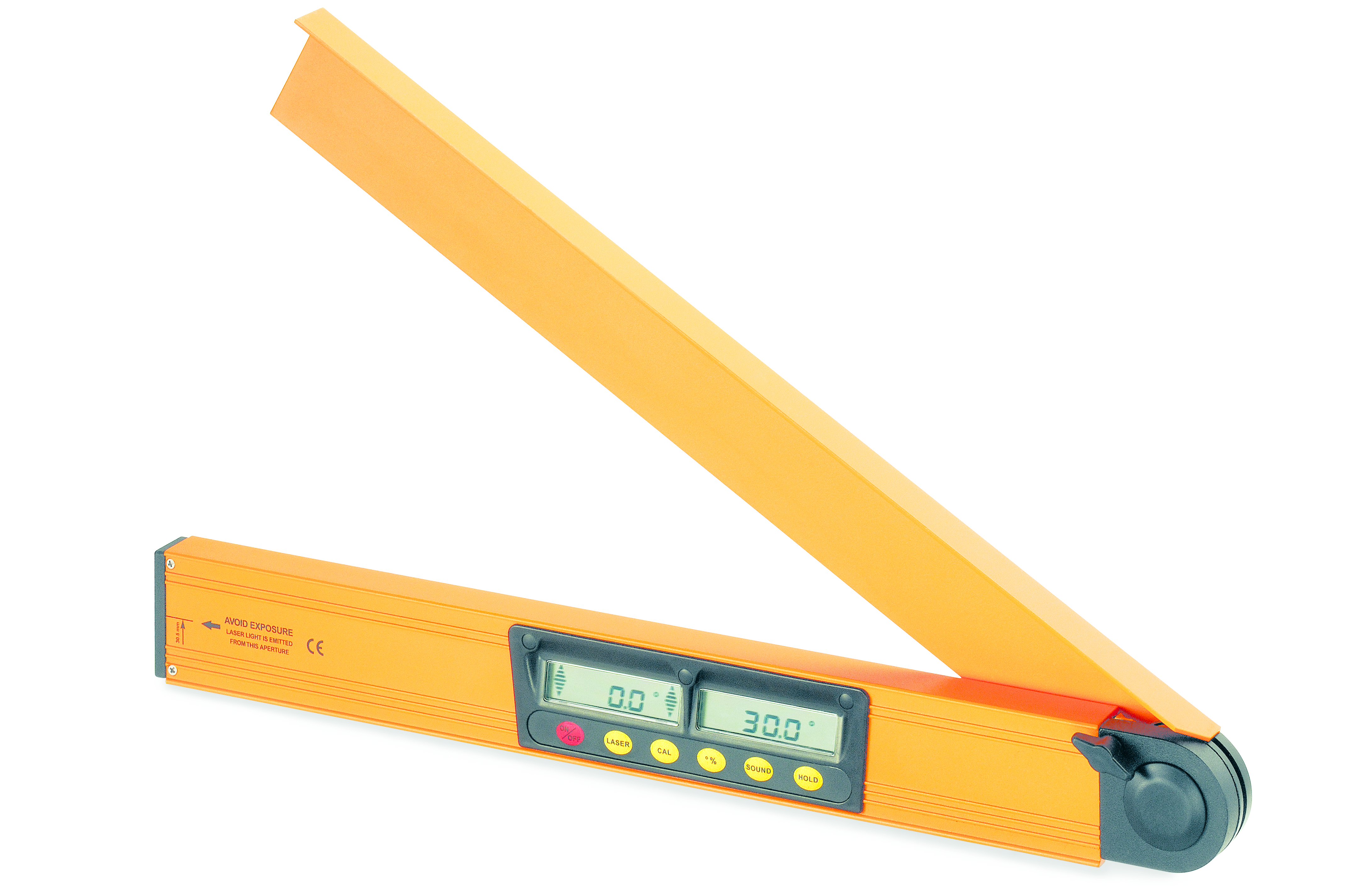 Digitalt vattenpass och gradskiva med laserpunkt. Mäter grader eller procent. Vinkelmätning 0-180°. Kan användas med alla tre funktionerna samtidigt eller separat.