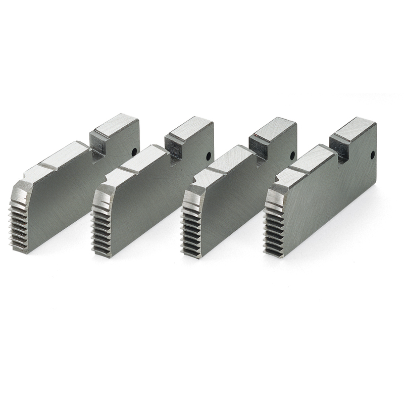 Automatiske skærebakker af hærdet kvalitetsstål med ekstremt lang levetid. Til skæring af præcise rørgevind på gevindstålrør iht. EN10255 M-H. Bruges med skærehoveder og gevindskæremaskine.