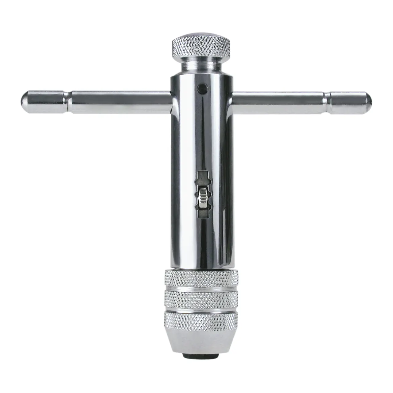 Idealisk för gängskärning på svåråtkomliga ställen. Med tvåbackschuck för fastspänning av fyrkantiga skaft. Skaft: glidande kryssgrepp med spår i båda ändar. Ytbehandling: förkromad. Versioner: justerbar vänster, höger, fast.