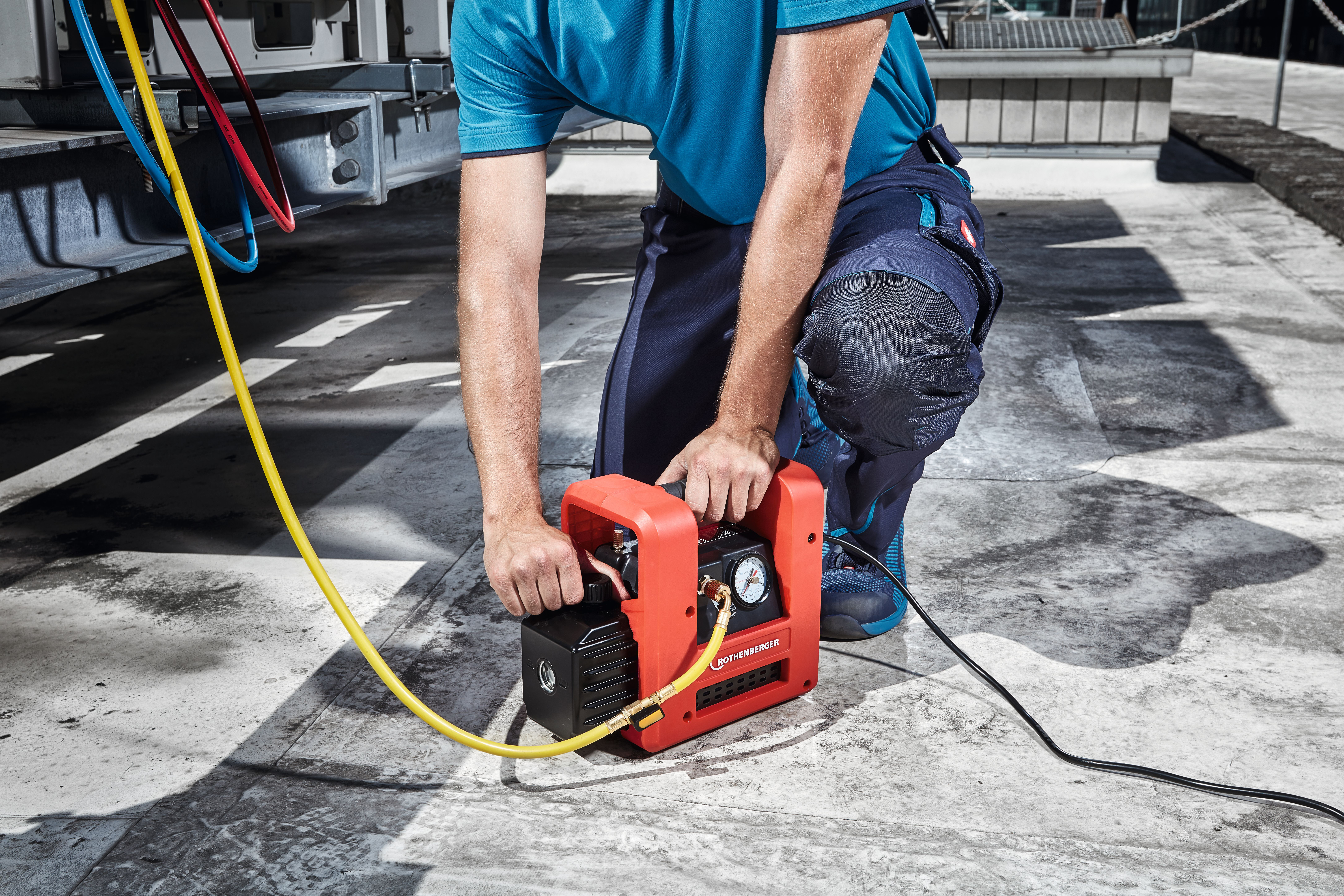 Tvåstegs vakuumpump för tömning av alla typer av kylkretsar enligt DIN 8975. Uppnår ett vakuum på mindre än 15 mikron. Även lämplig för brandfarliga köldmedier som R32. Kapacitet 85 l/min.