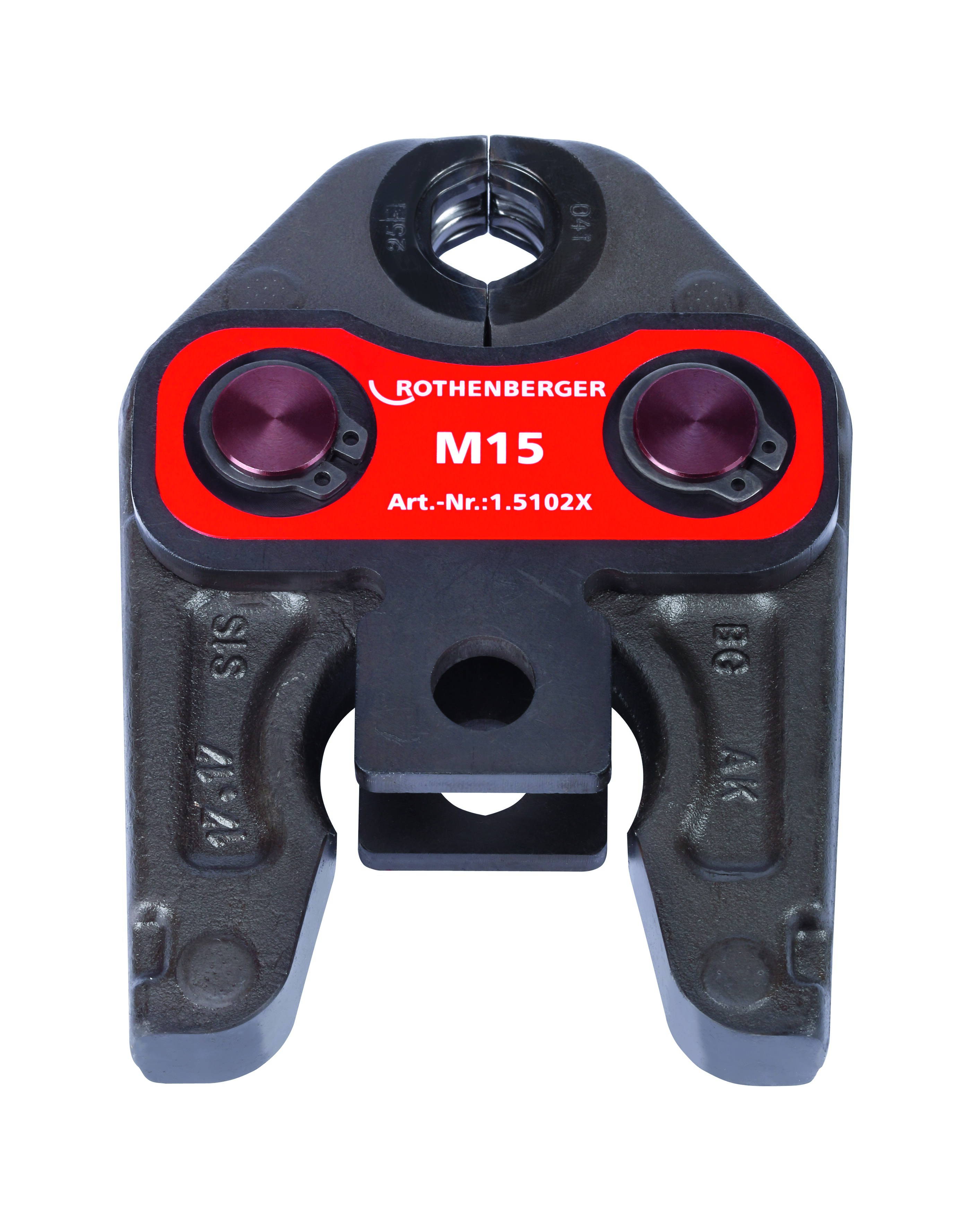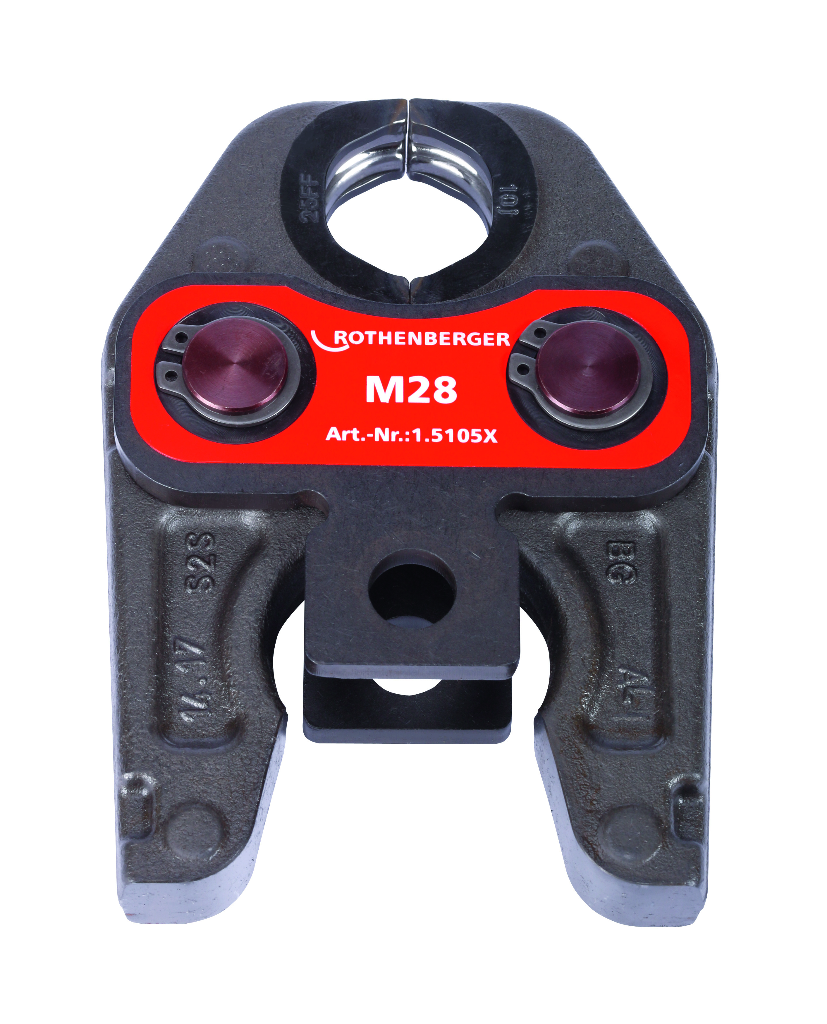Sats med Rothenberger pressbackar Standard M 15-28 för metall- eller plaströr med en diameter på 15-28 mm.