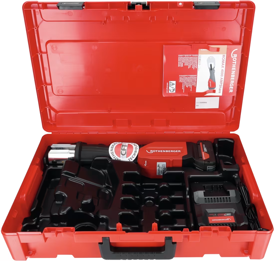 Den elektrohydrauliska batteridrivna pressmaskinen med AMPShare-batteriteknik är konstruerad för systemberoende pressning av rördelar med en rördiameter på upp till 110 mm och en stanskraft på 32–34 kN .