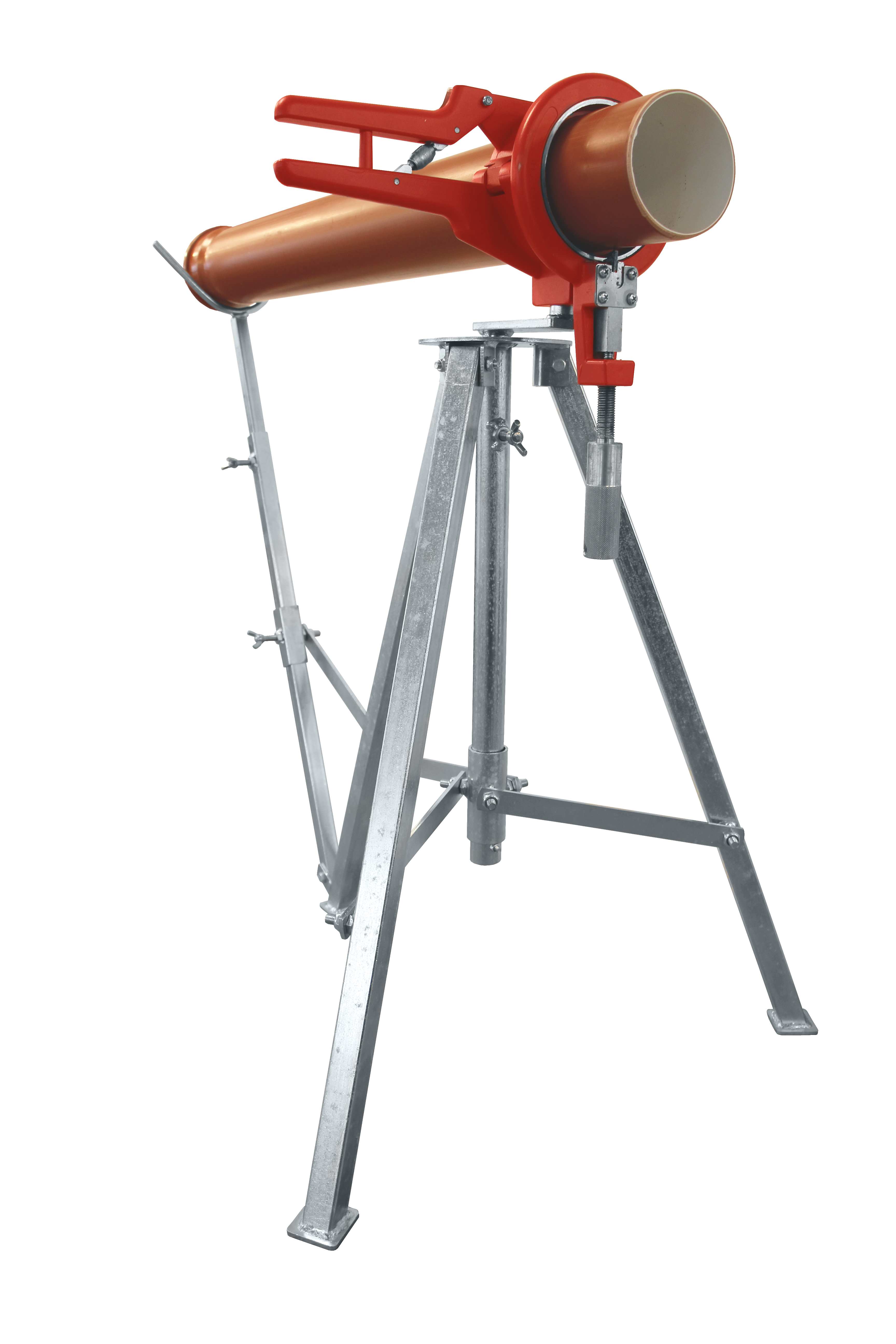 Praktisk stativ til let at skære rør. ROCUT monteres på stativet og armen foldes ud, så røret let kan placeres på stativet.