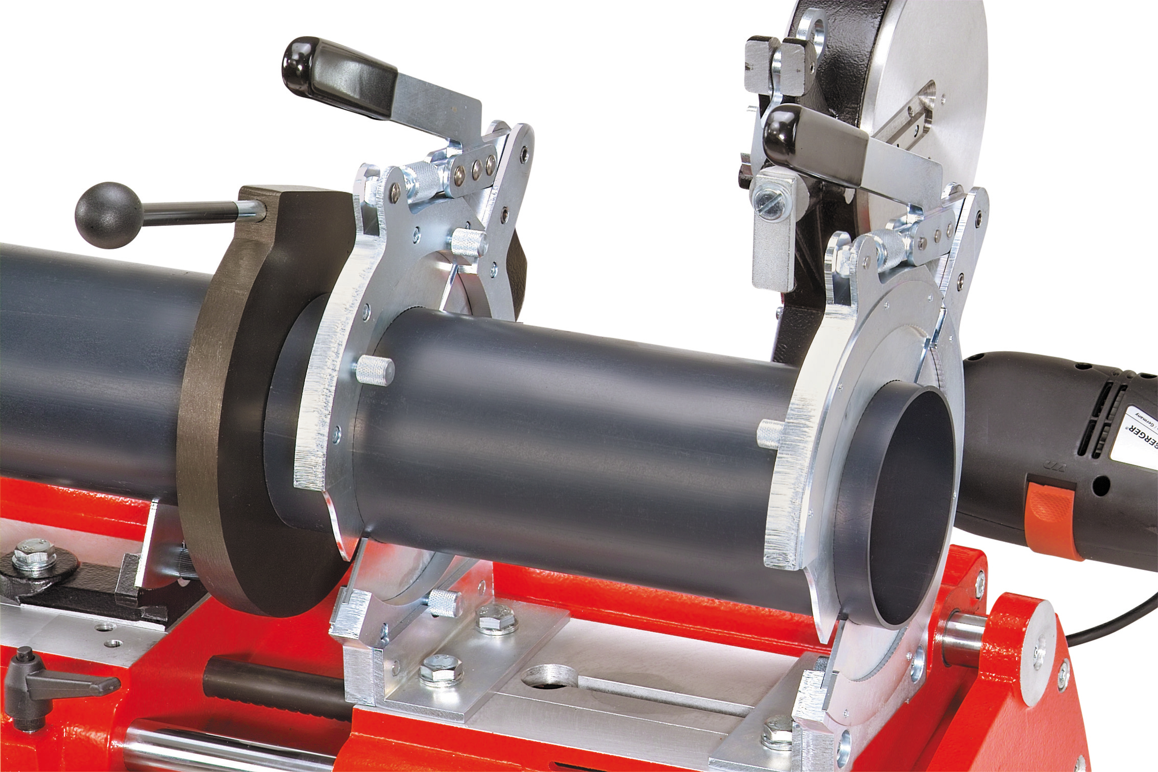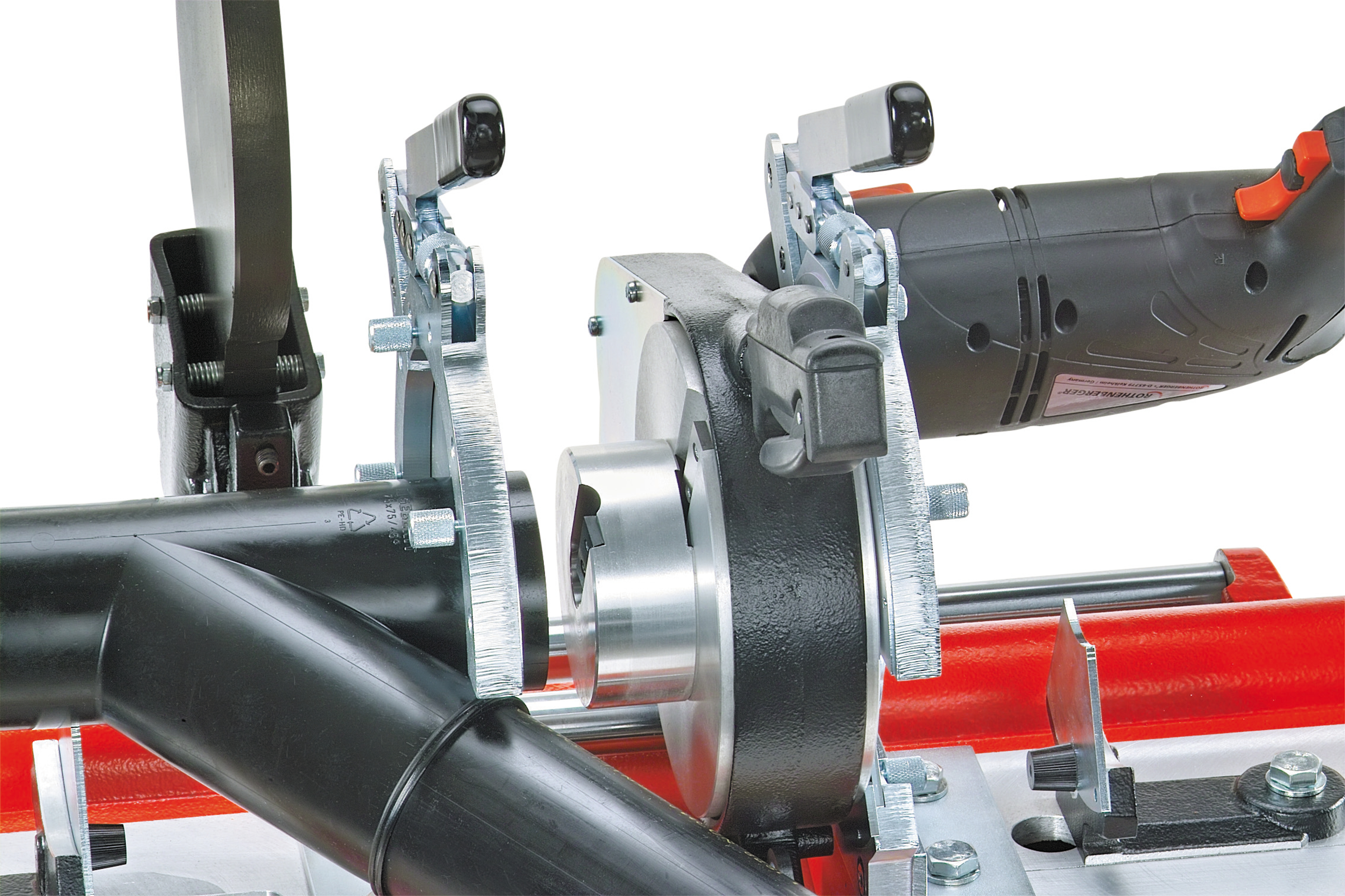 - Säker fastspänning av rör, rördelar, snäva 45°-avgreningar och 90°-böjar