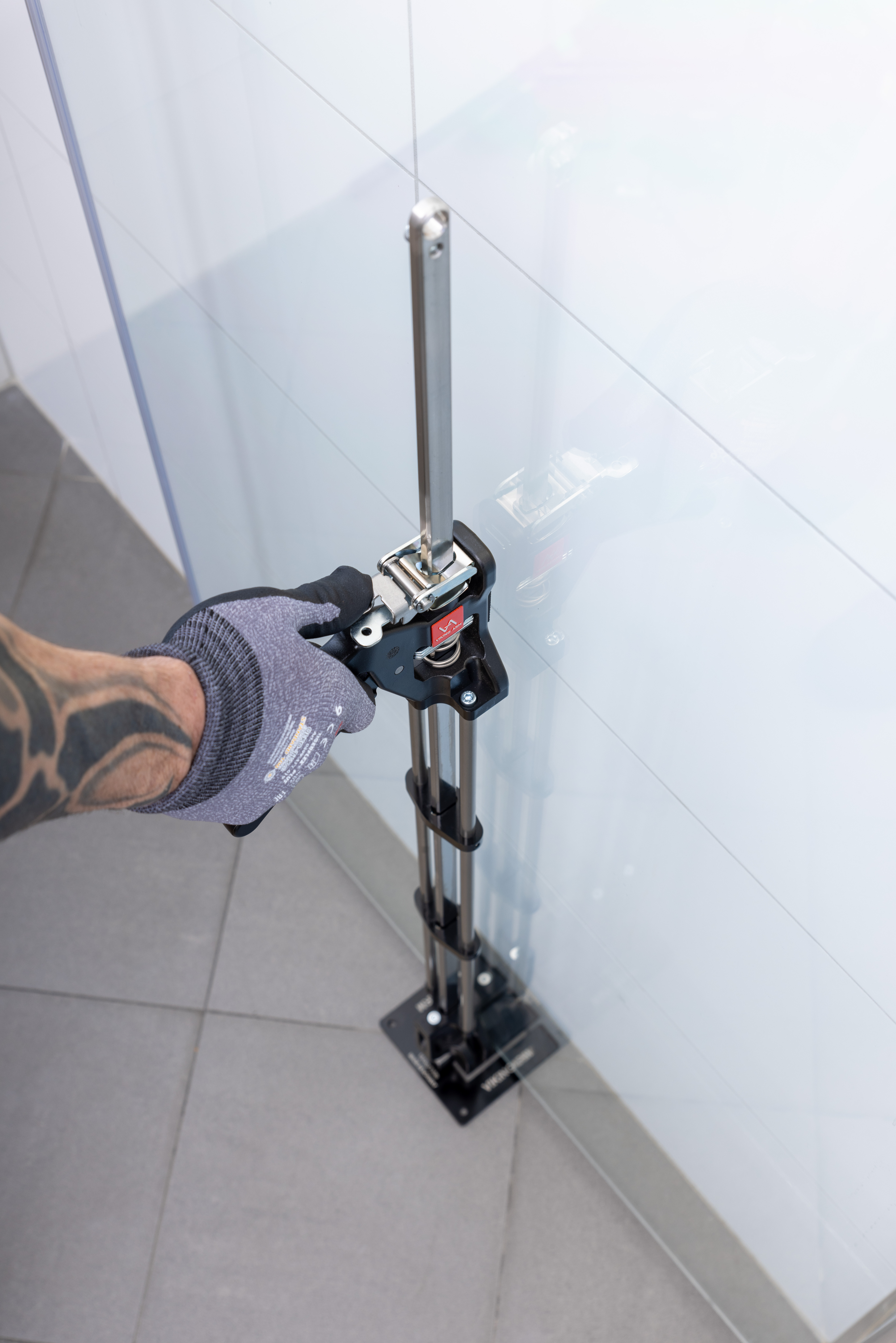 VIKING ARM® Long är baserad på det ursprungliga Viking Arm-installationsverktyget, men möjliggör lyftning, sänkning och finjustering i upprätt läge. Den är utformad för att förbättra ergonomi och effektivitet i installationer där repetitiva eller precisa lyft krävs.